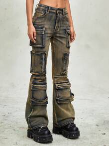 Grunge Punk Jeans a zampa da donna sfrangiati, stile retrò punk di strada