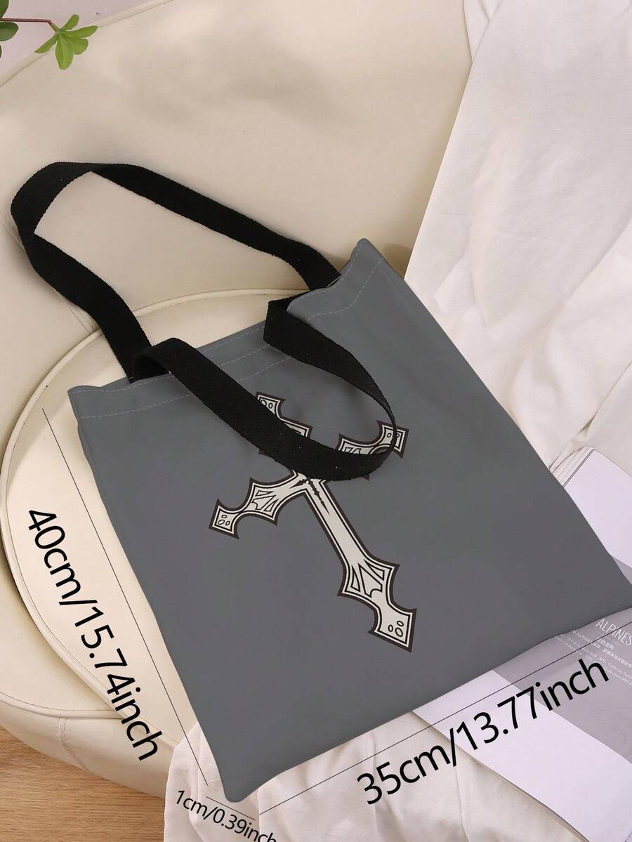 Grunge Punk Borsa shopping di tela doppia faccia stampata con stampa croce