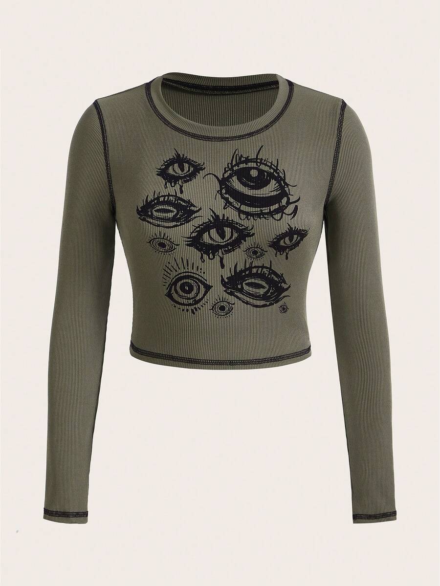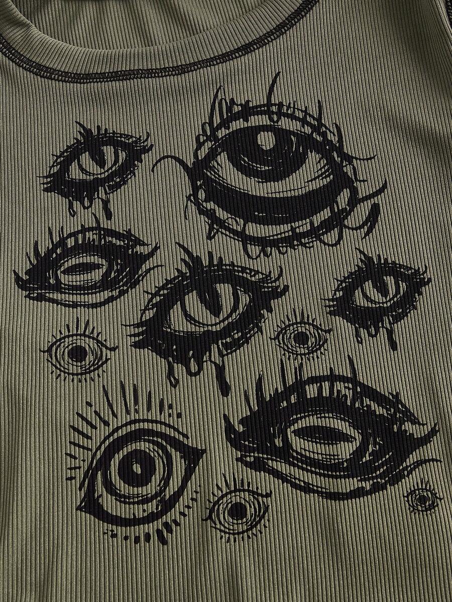 Grunge Punk Maglietta stampa occhi impunture
