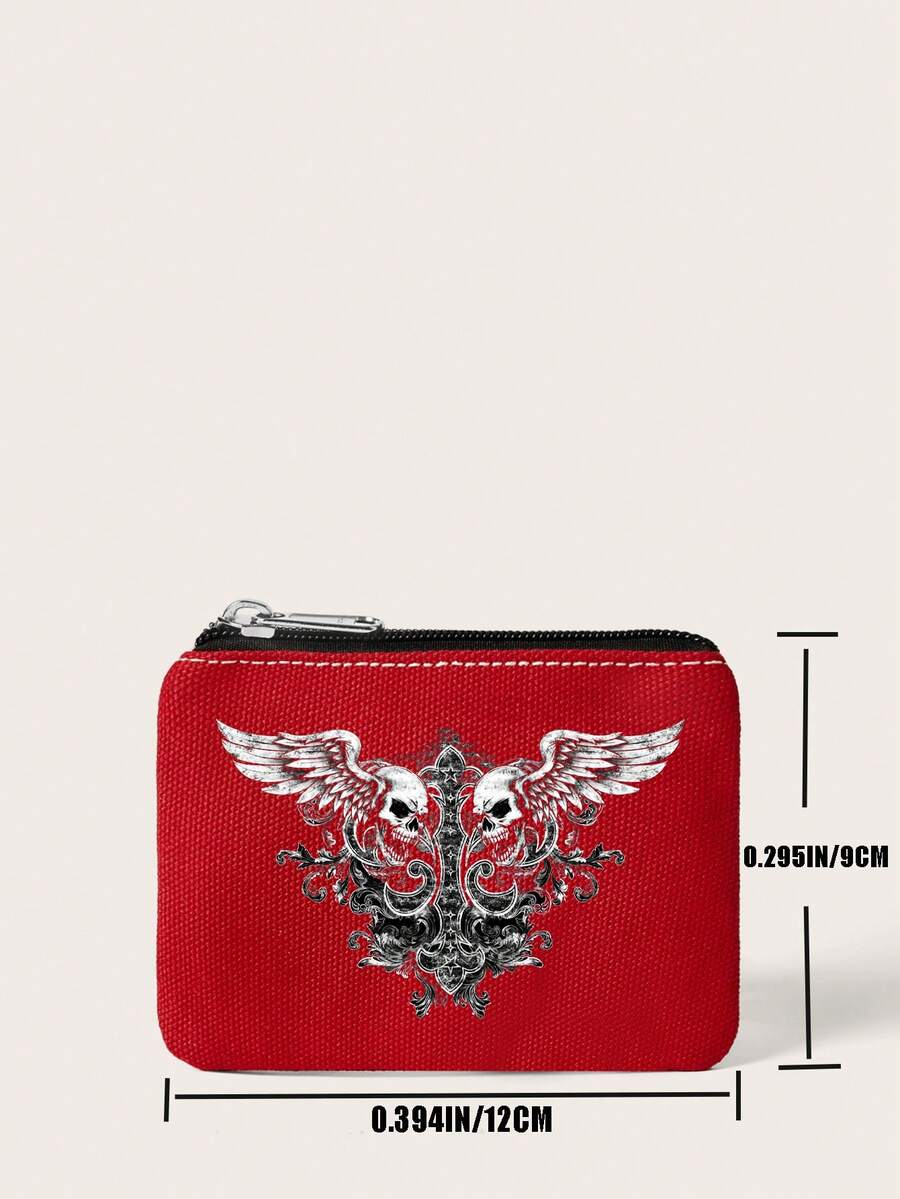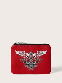 Grunge Punk Portafoglio bianco alla moda con design di teschio alato