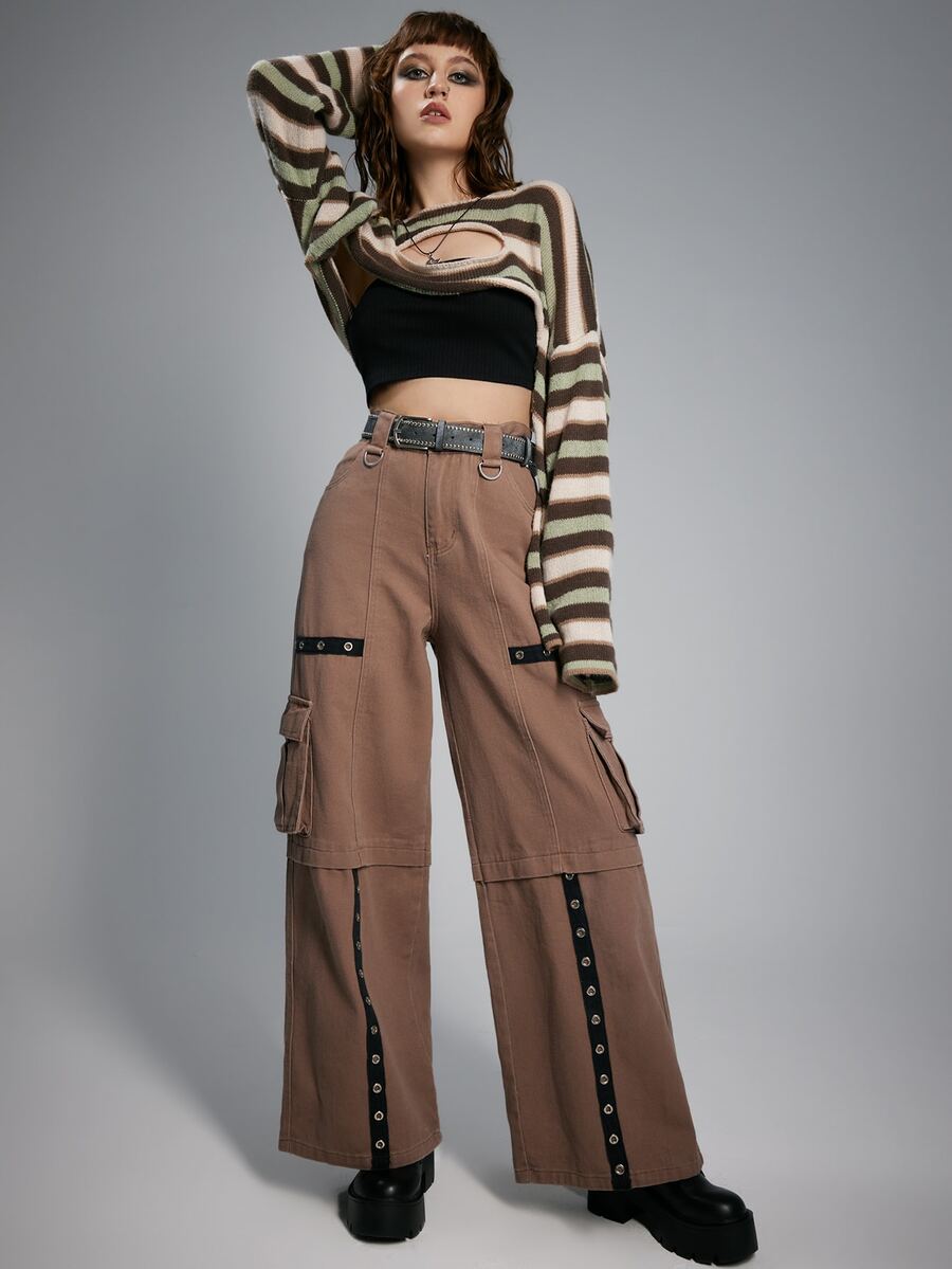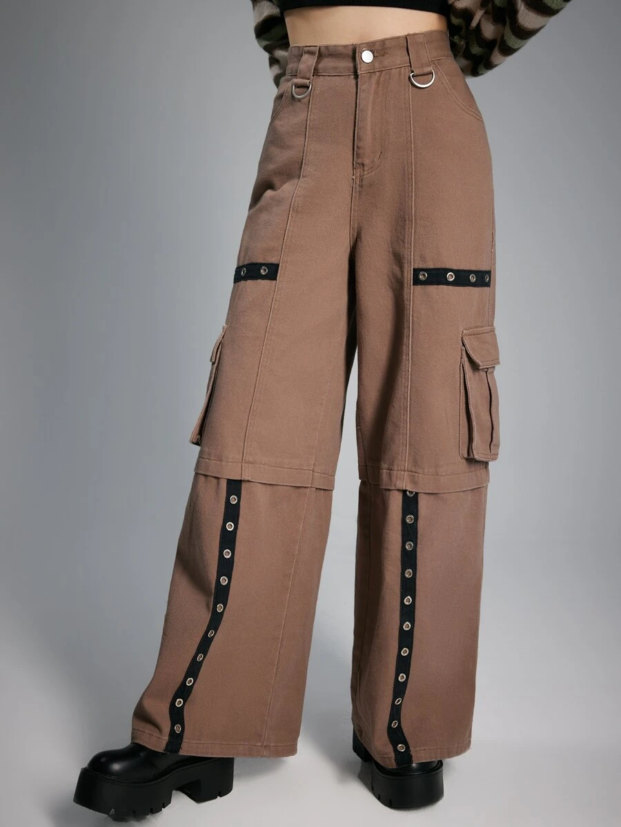 Grunge Punk Jeans cargo occhielli