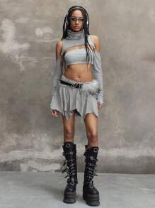 Grunge Punk Canotta con spalle scoperte e effetto vissuto di stile Grunge