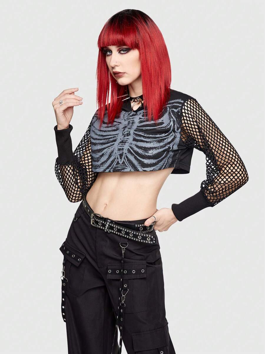 Grunge Punk Felpa Con Cappuccio Con Giunture In Rete