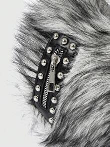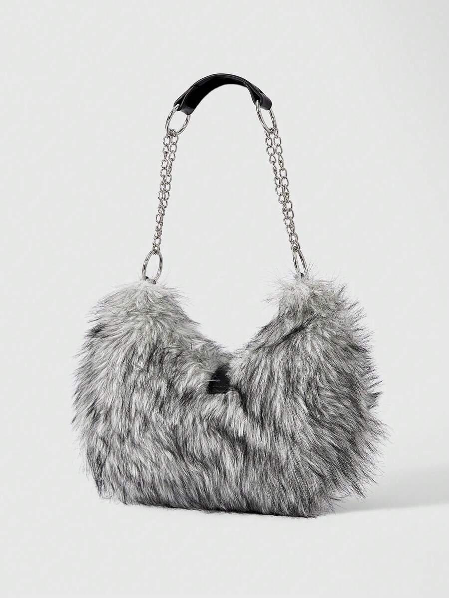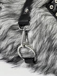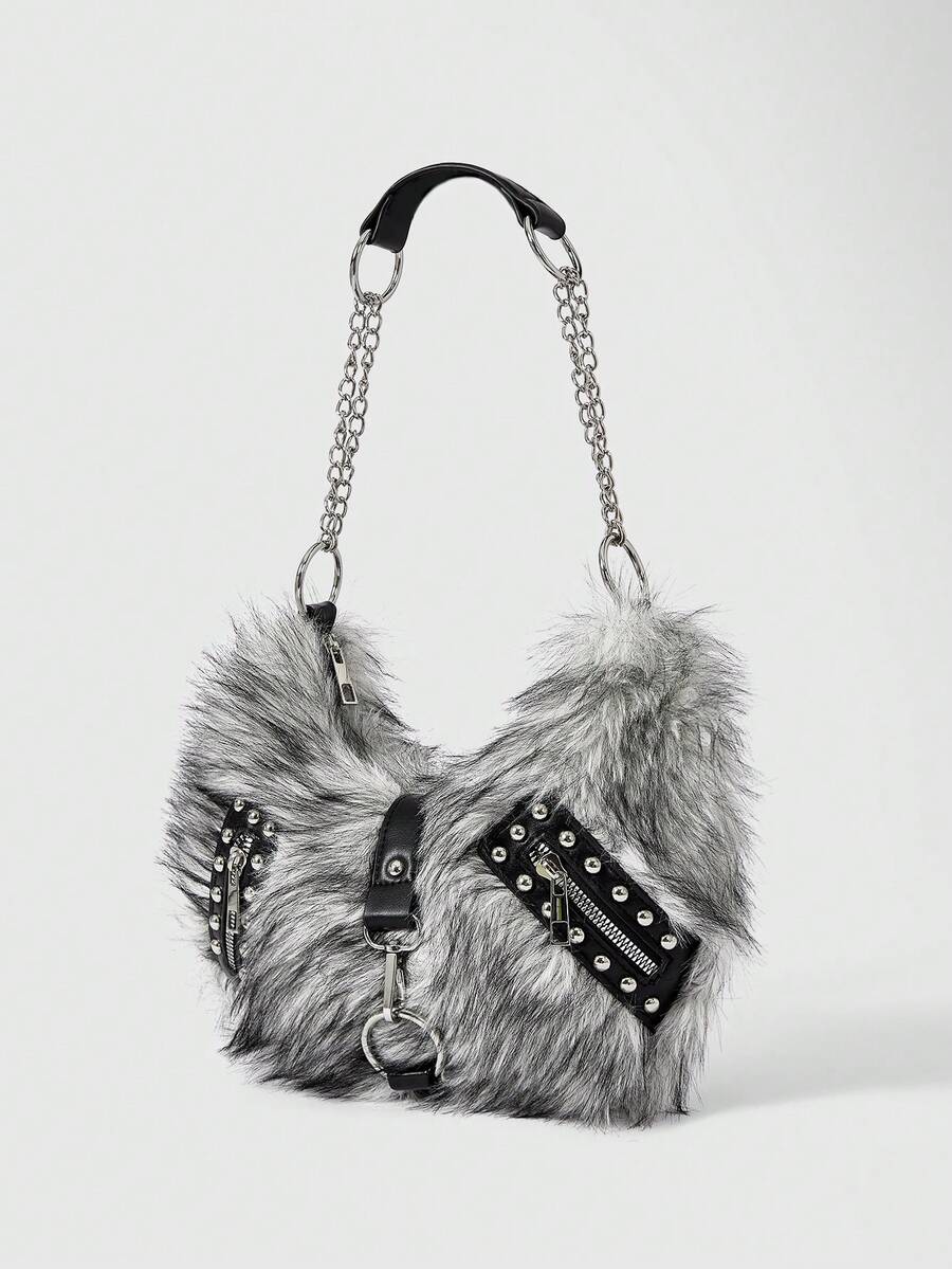 Grunge Punk Borsa a spalla da donna, borsa hobo, in pelliccia sintetica, morbida e soffice, con borchie, alla moda, personalizzabile, versatile, da strada, dolce e cool, per ragazze, punk, stile Y2K, per uso quotidiano, adatta per autunno e inverno (motivo casuale)