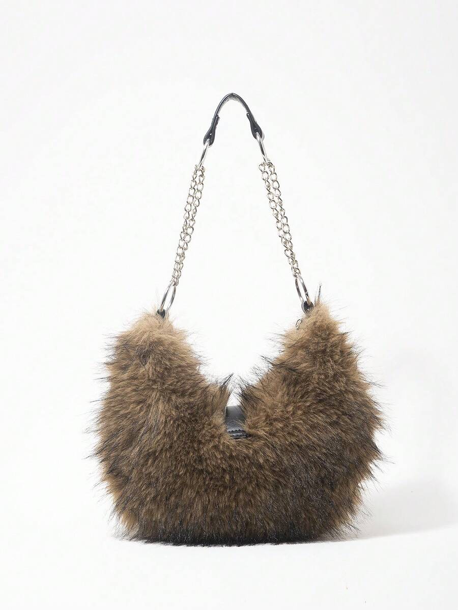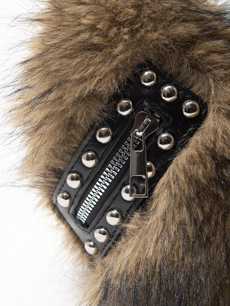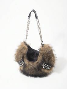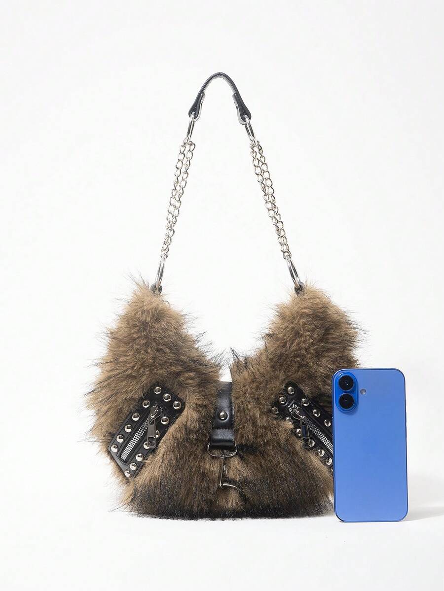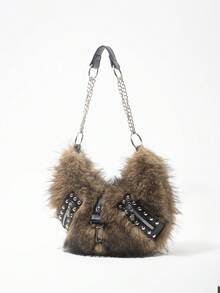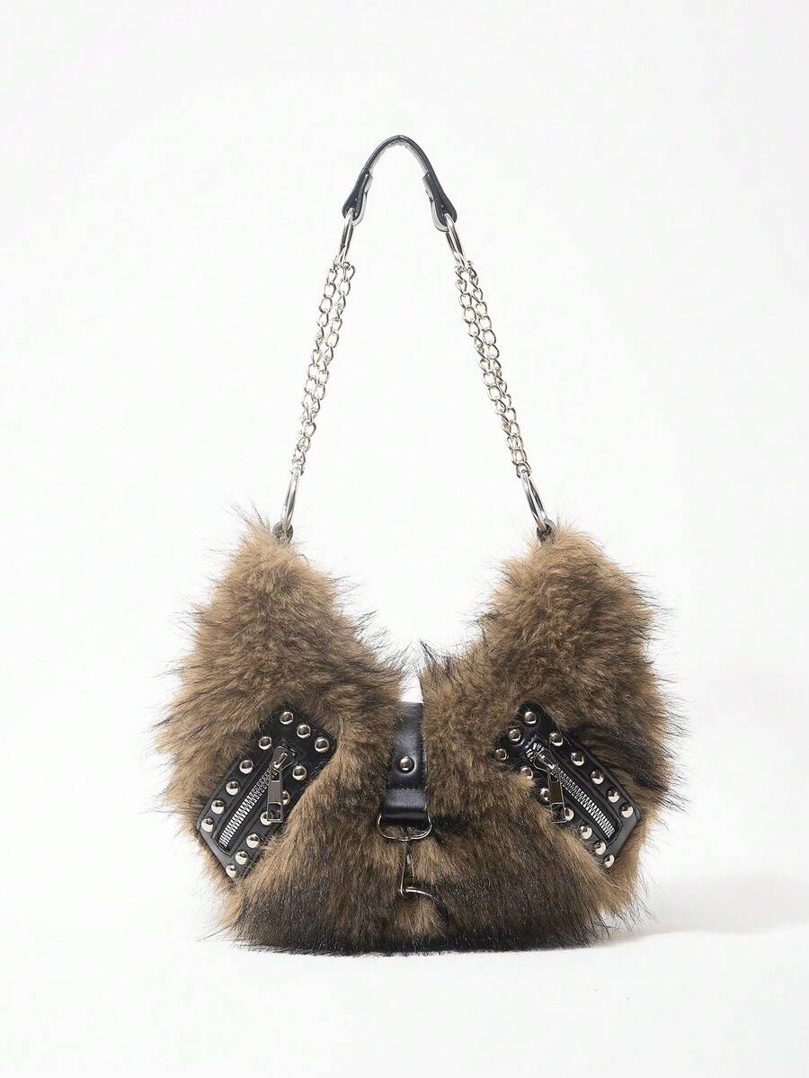 Grunge Punk Borsa a spalla da donna, borsa hobo, in finta pelliccia, peluche, borsa con rivetti, alla moda, personalizzata, versatile, da strada, dolce e cool, per ragazze, punk, stile Y2K, per uso quotidiano, adatta per autunno e inverno (motivo casuale)