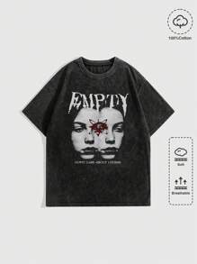 Grunge Punk Maglietta oversize con doppia faccia e design stampato con lettere, per la scuola