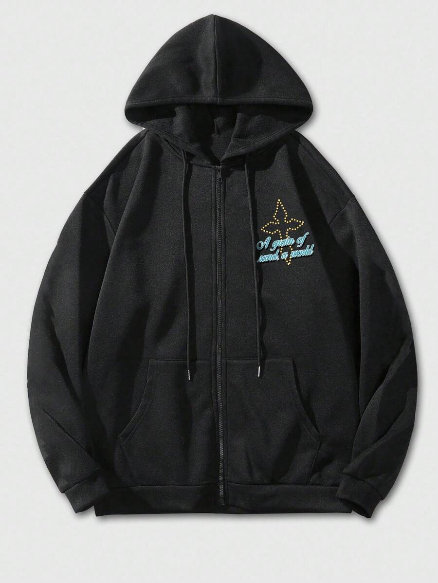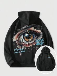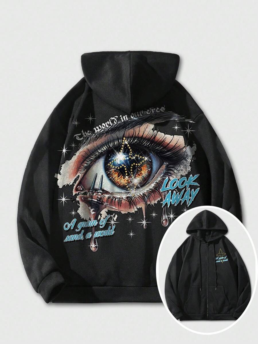 Grunge Punk Felpa con cappuccio e chiusura lampo da uomo, nera, con grafica a stampa di occhi