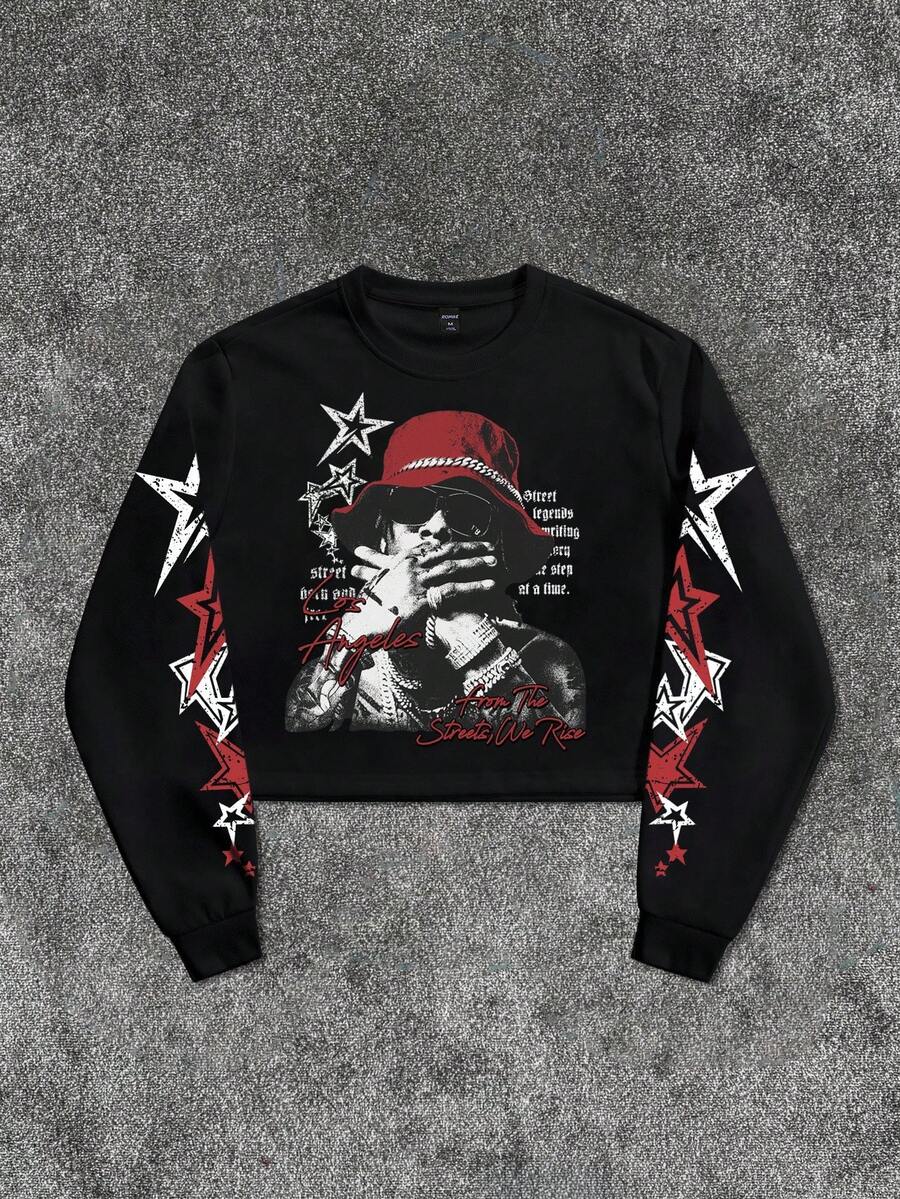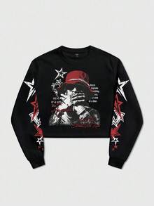 Grunge Punk Felpa casual da uomo con stampa di figure e stelle