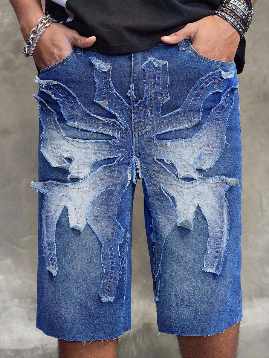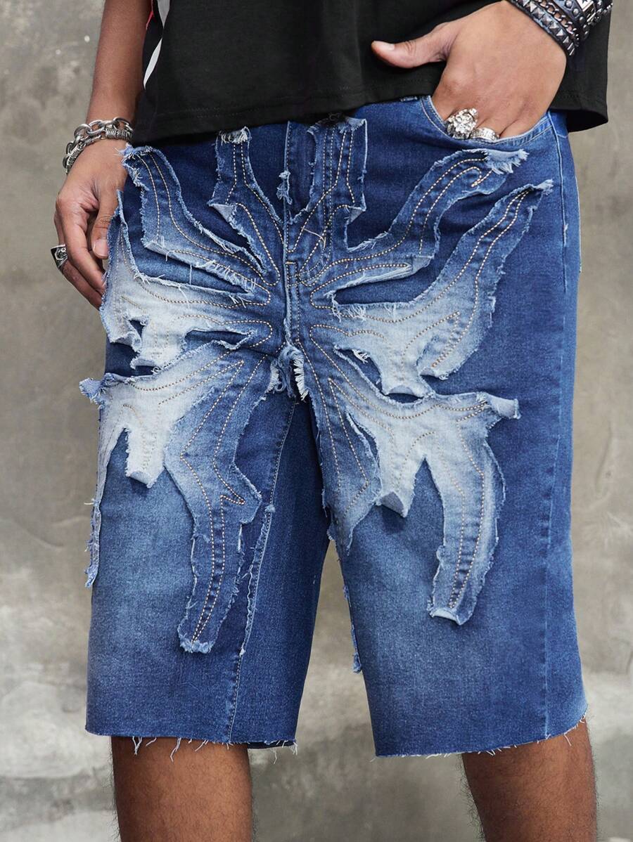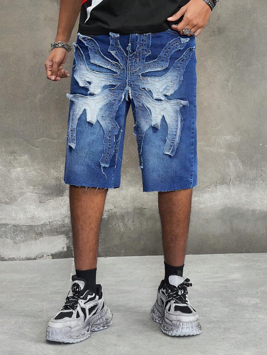 Grunge Punk Pantaloncini di jeans casual da uomo con toppe lavati