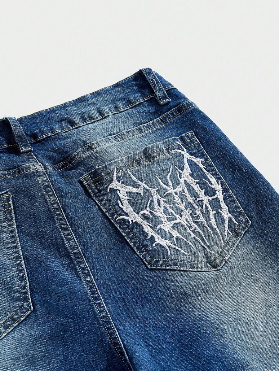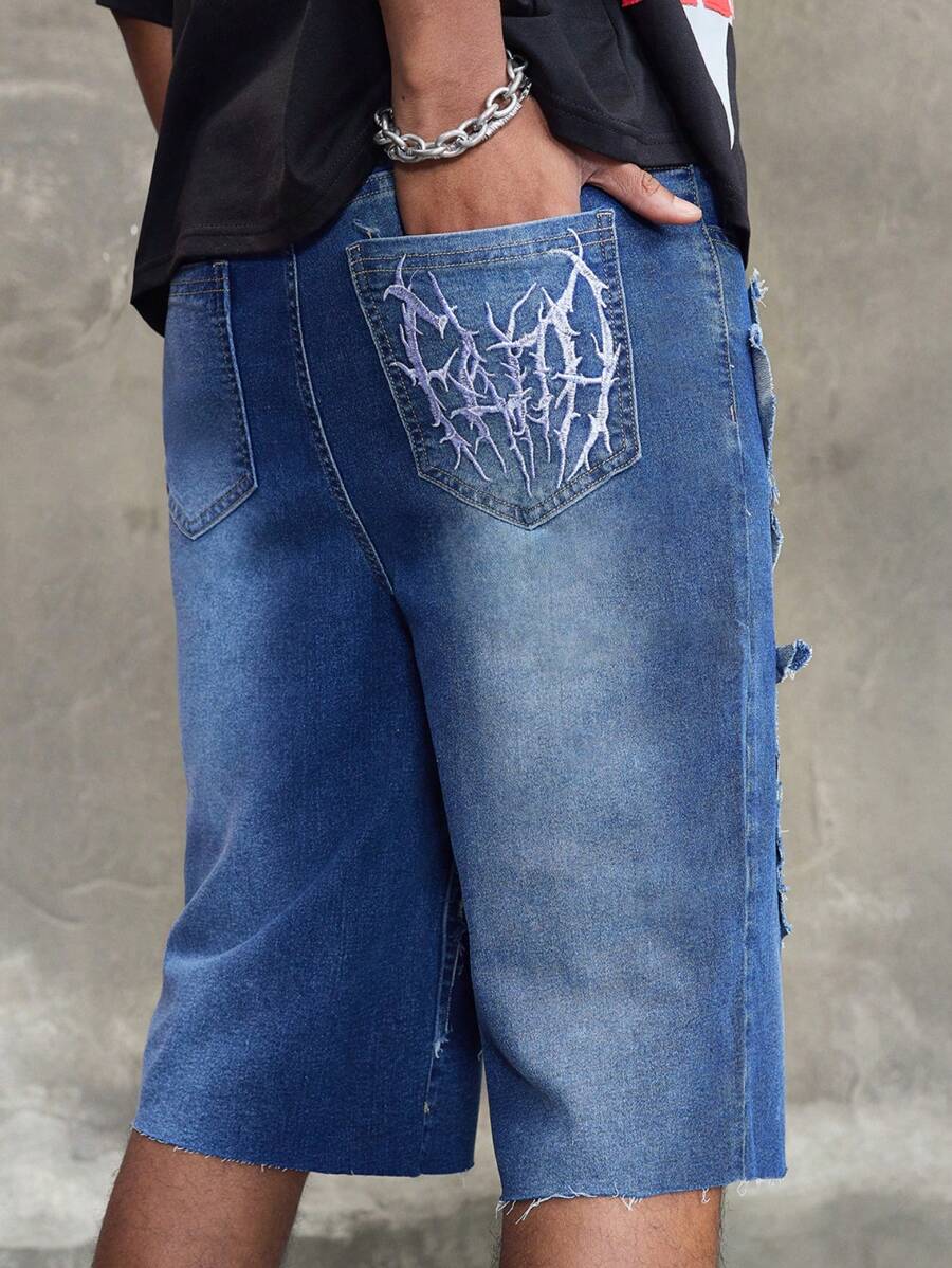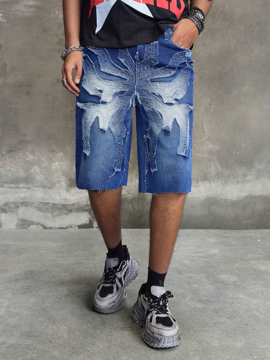 Grunge Punk Pantaloncini di jeans casual da uomo con toppe lavati