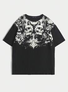 Grunge Punk Maglietta uomo con stampa di teschio stile gotico, di vintage per strada