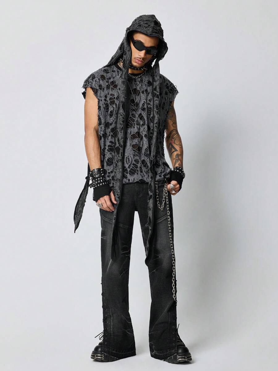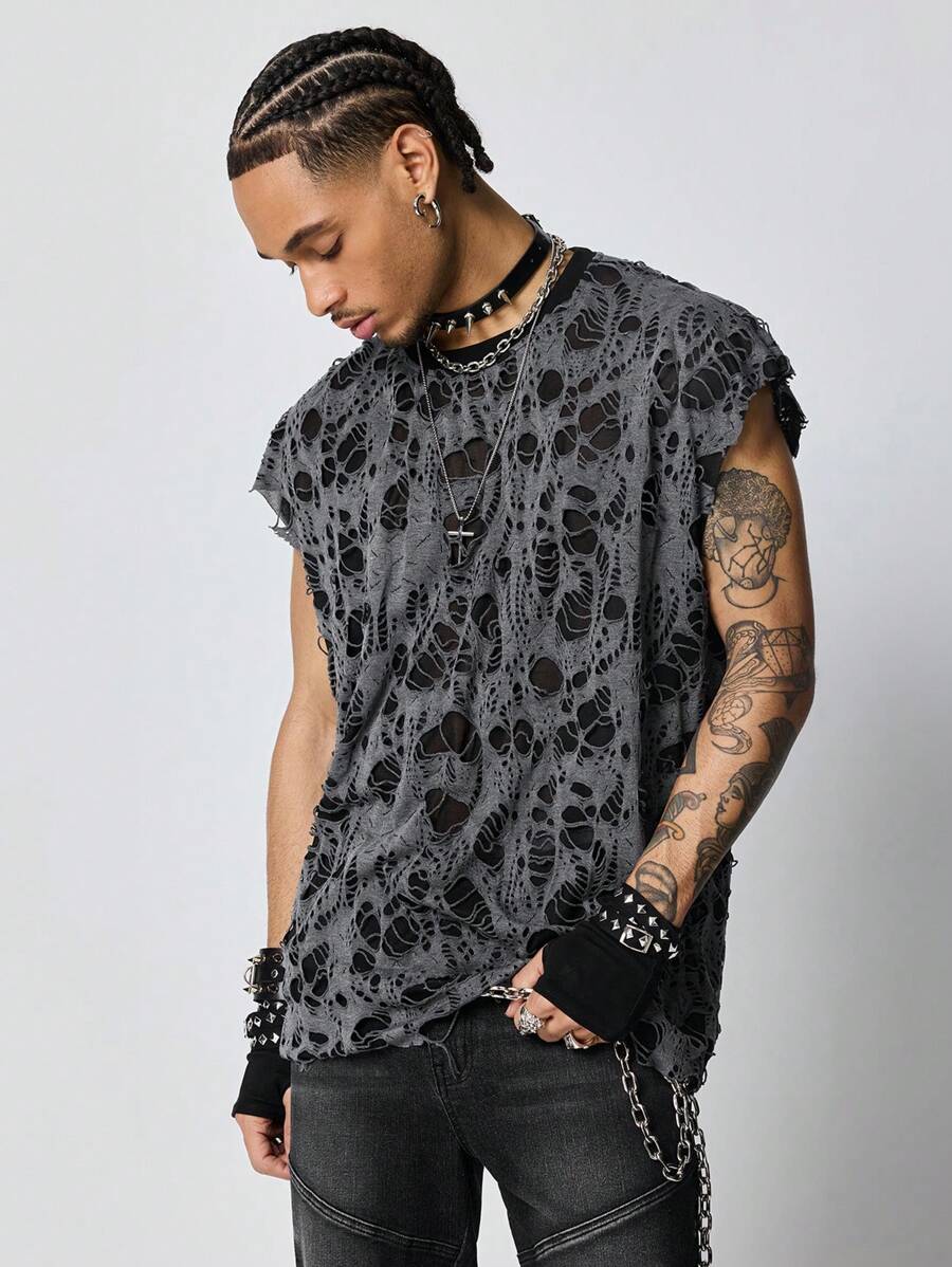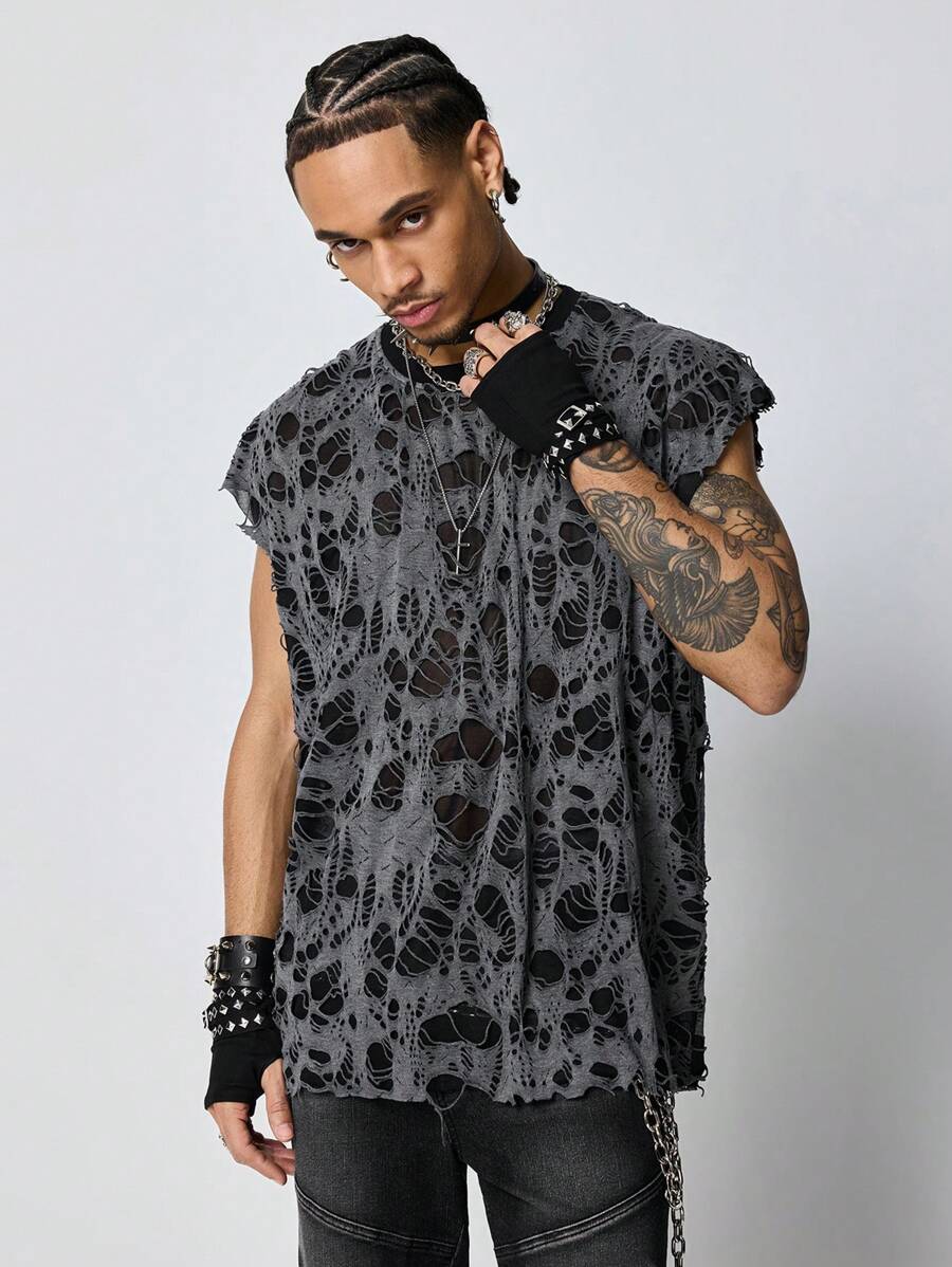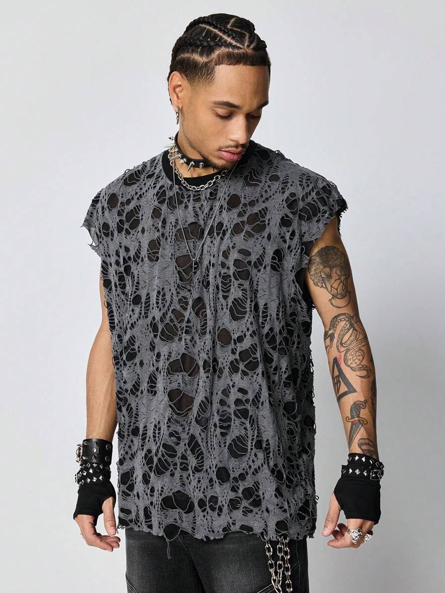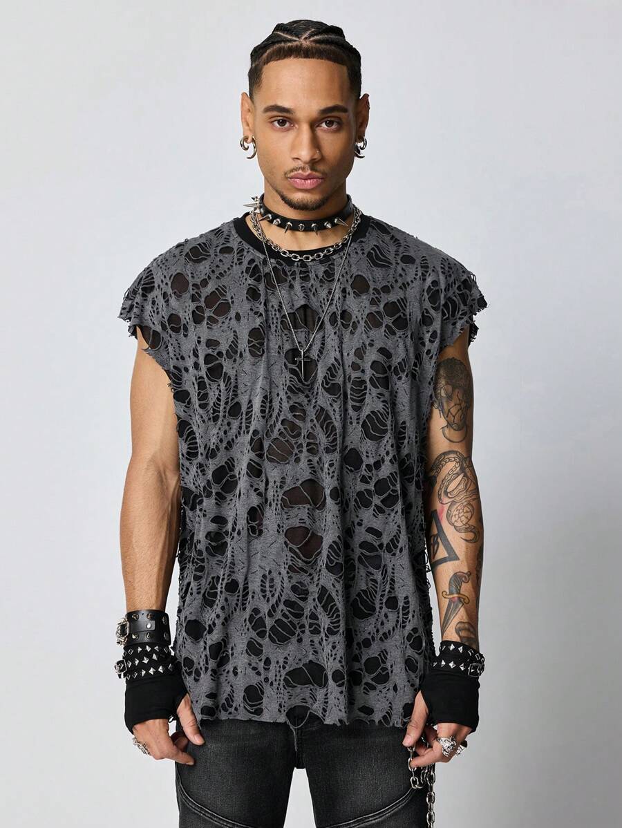 Grunge Punk Canotta casual oversize con strappi, stile grunge da uomo, stile anni 2000