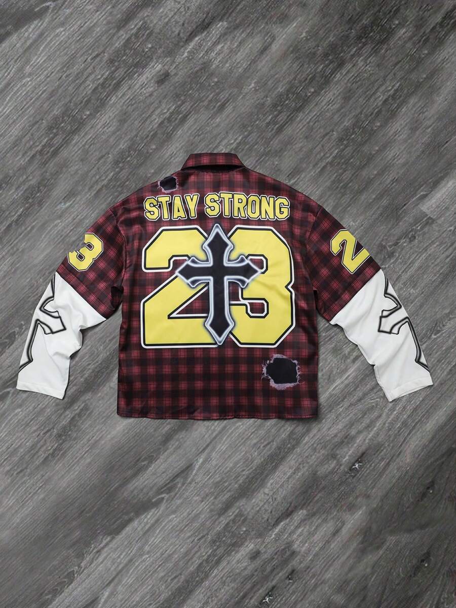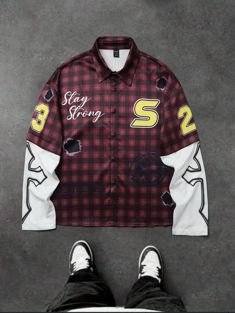 Grunge Punk Camicia Oversize da uomo con patchwork a quadri, Streetwear