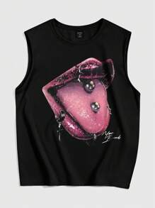 Grunge Punk Maglietta senza maniche da uomo casual con stampa a labbra, design minimalista per uso quotidiano