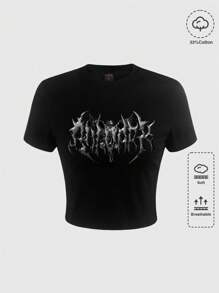 Grunge Punk Top corto con stampa in metallo a lettere, per la scuola