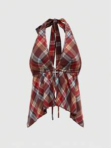 Grunge Punk Canotta con schiena aperta a scacchi, con decorazione pendente a croce di strass, in stile sexi Y2K per festival musicali