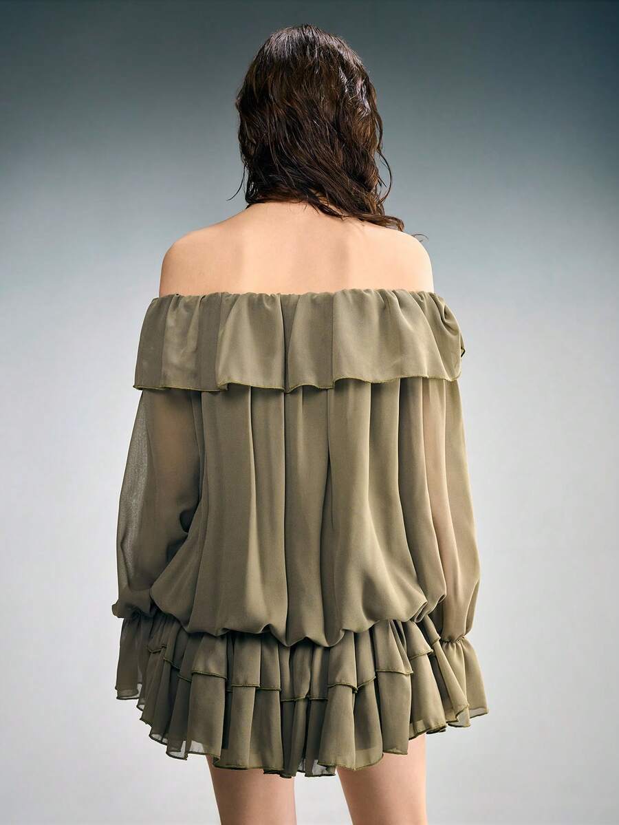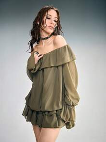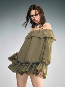 Grunge Punk Abito mini in chiffon trasparente a linea A con spalle scoperte