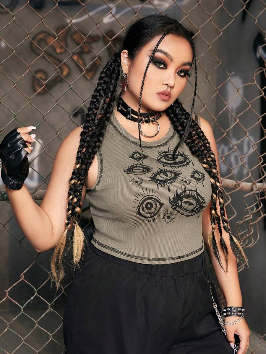 Grunge Punk Taglie Forti Canotta stampa occhi
