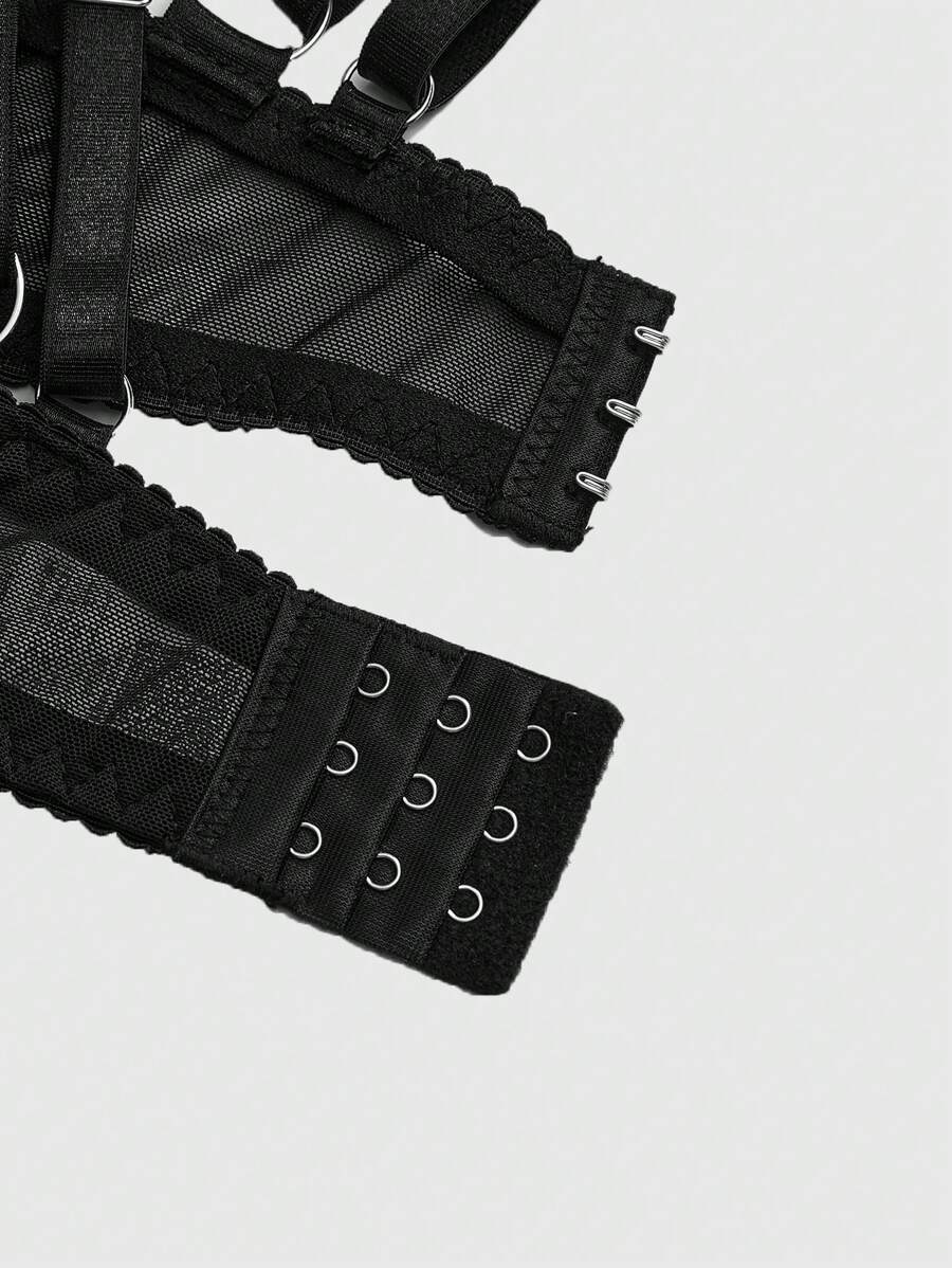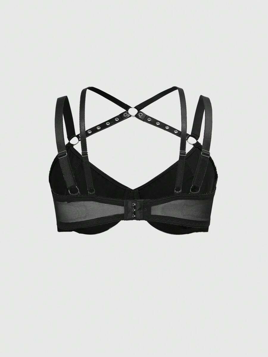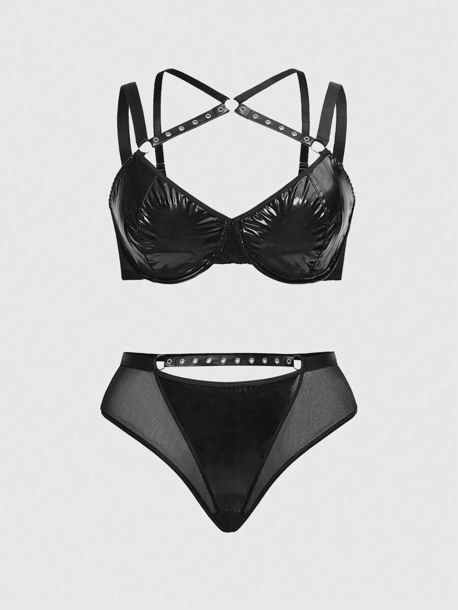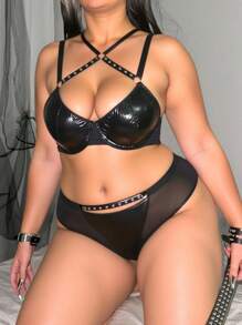 Grunge Punk Set di biancheria intima da donna in taglia comoda stile punk scuro, con reggiseno con ferretto e perizoma triangolare traforato