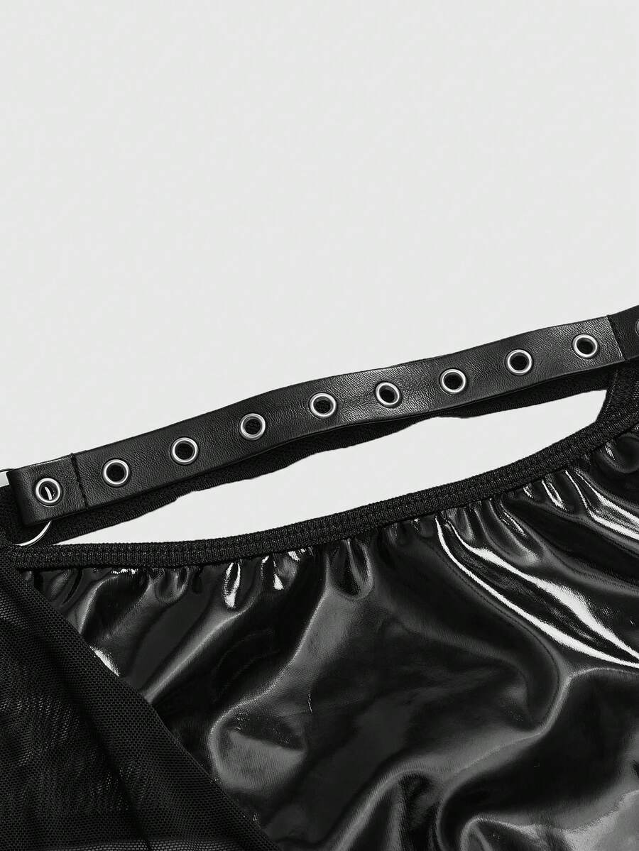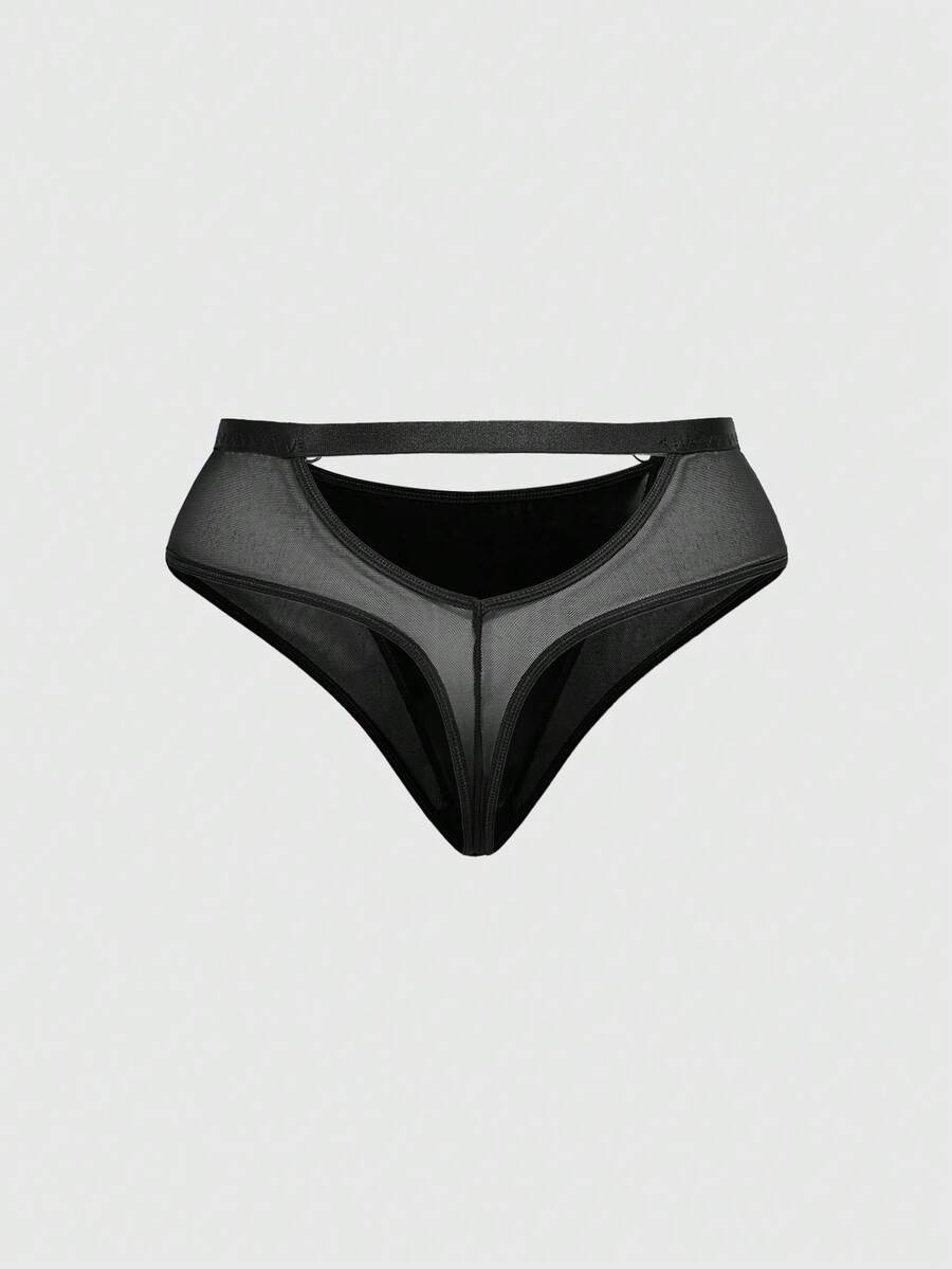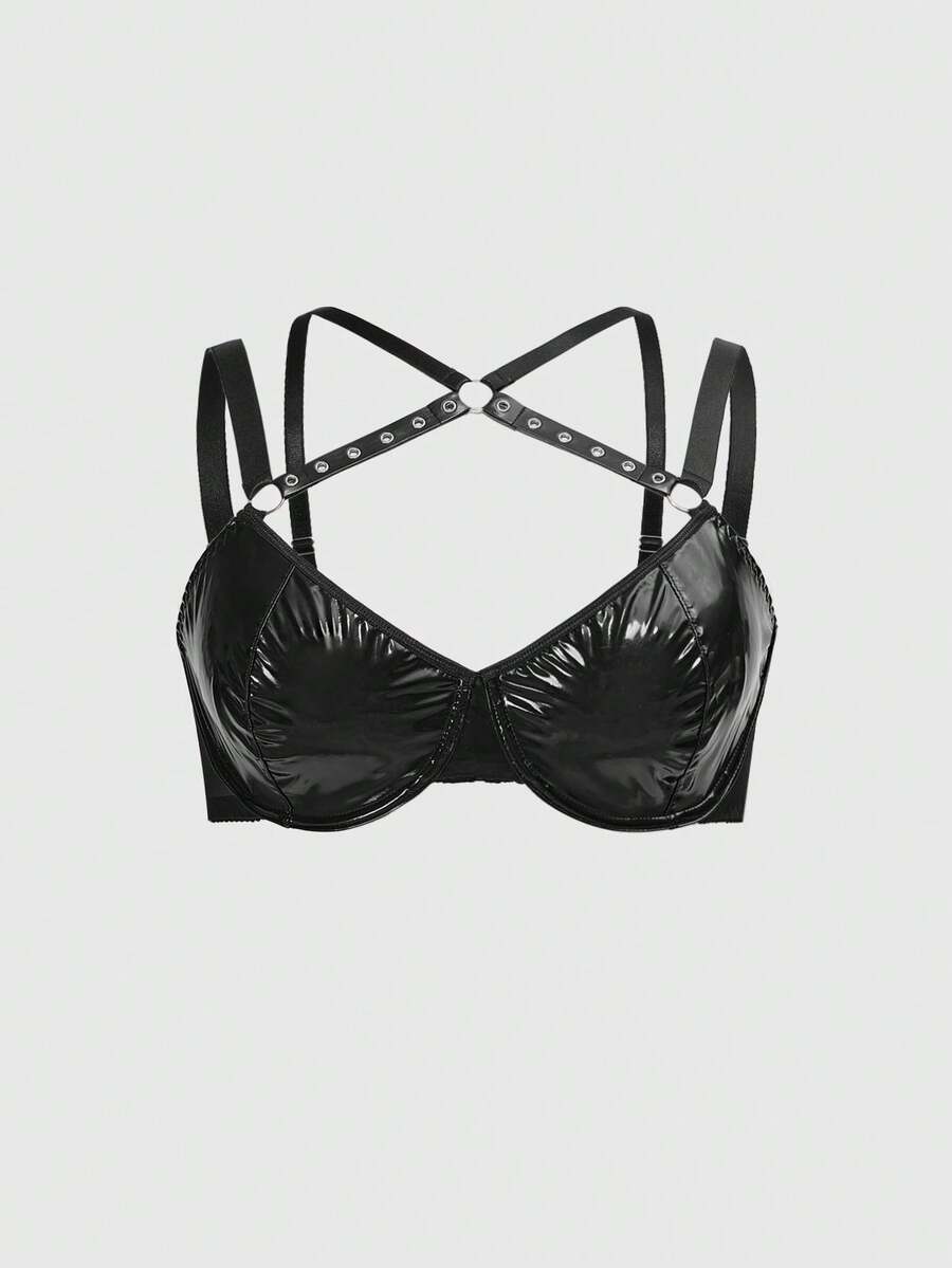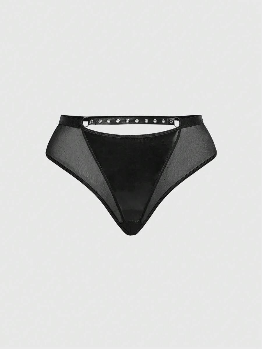 Grunge Punk Set di biancheria intima da donna in taglia comoda stile punk scuro, con reggiseno con ferretto e perizoma triangolare traforato