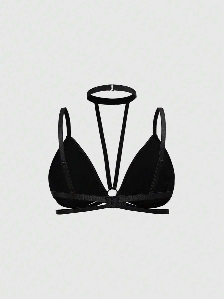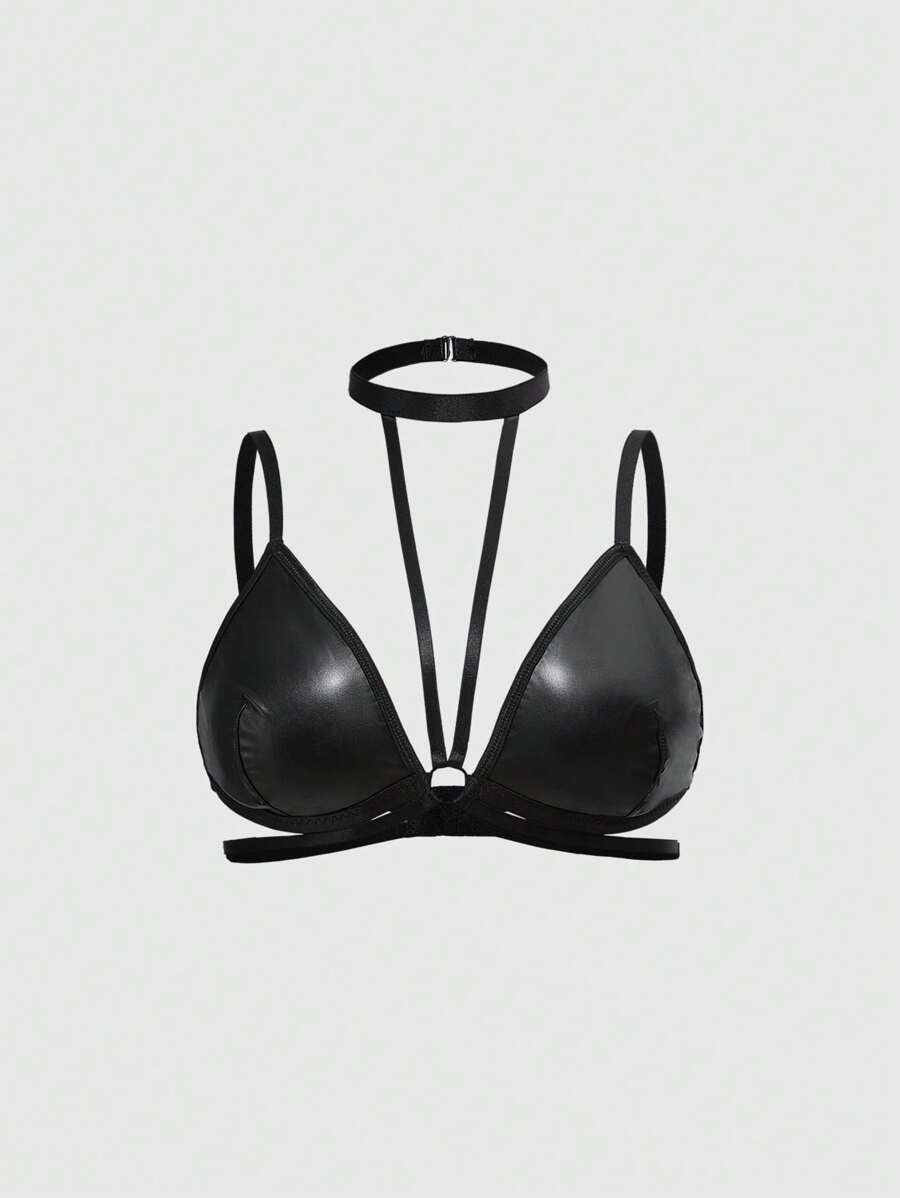 Grunge Punk Set lingerie sexy extra large, composto da reggiseno a triangolo e perizoma a triangolo, in stile dark punk per festival musicali, con coppa in PU e voce dark