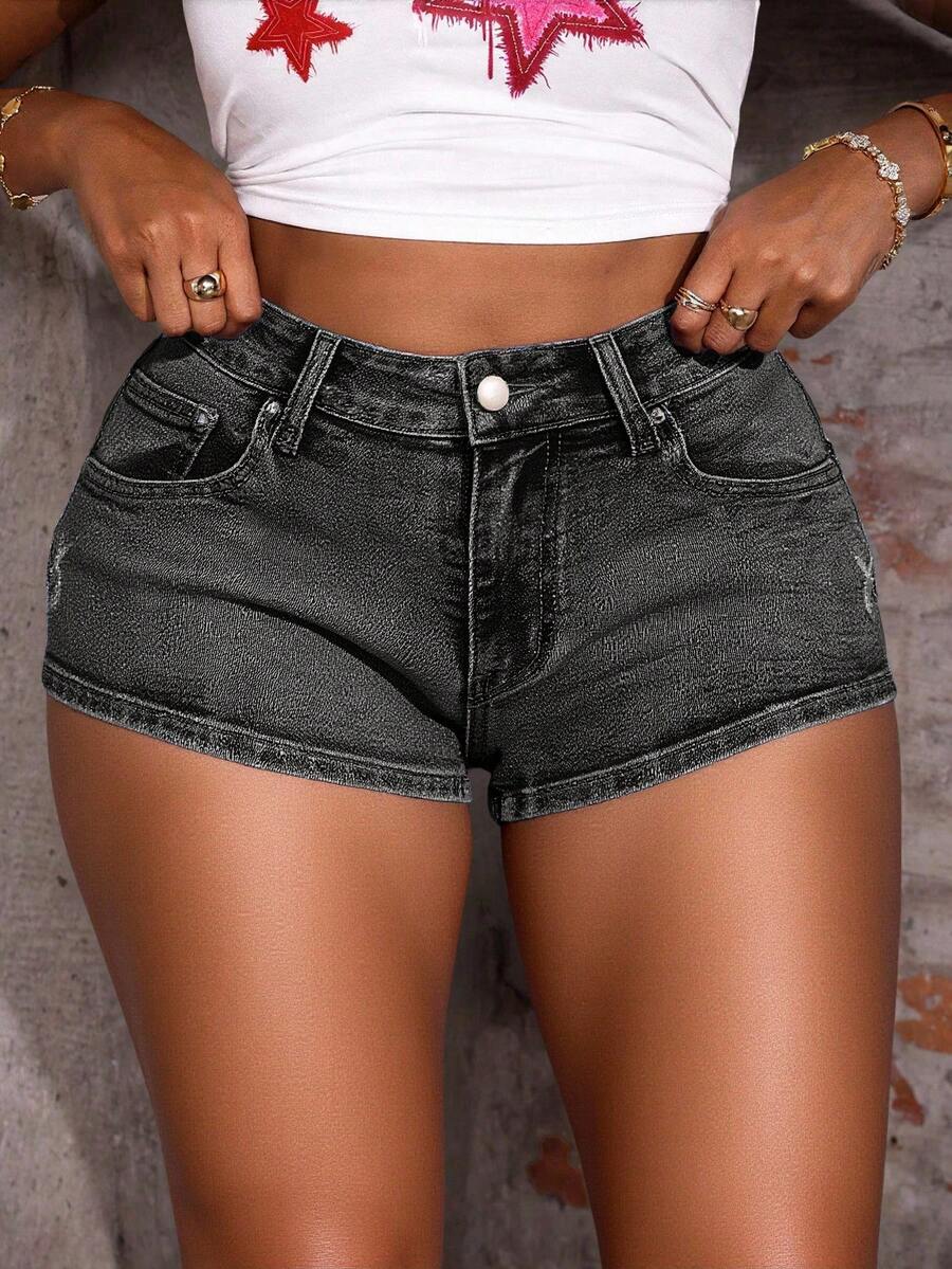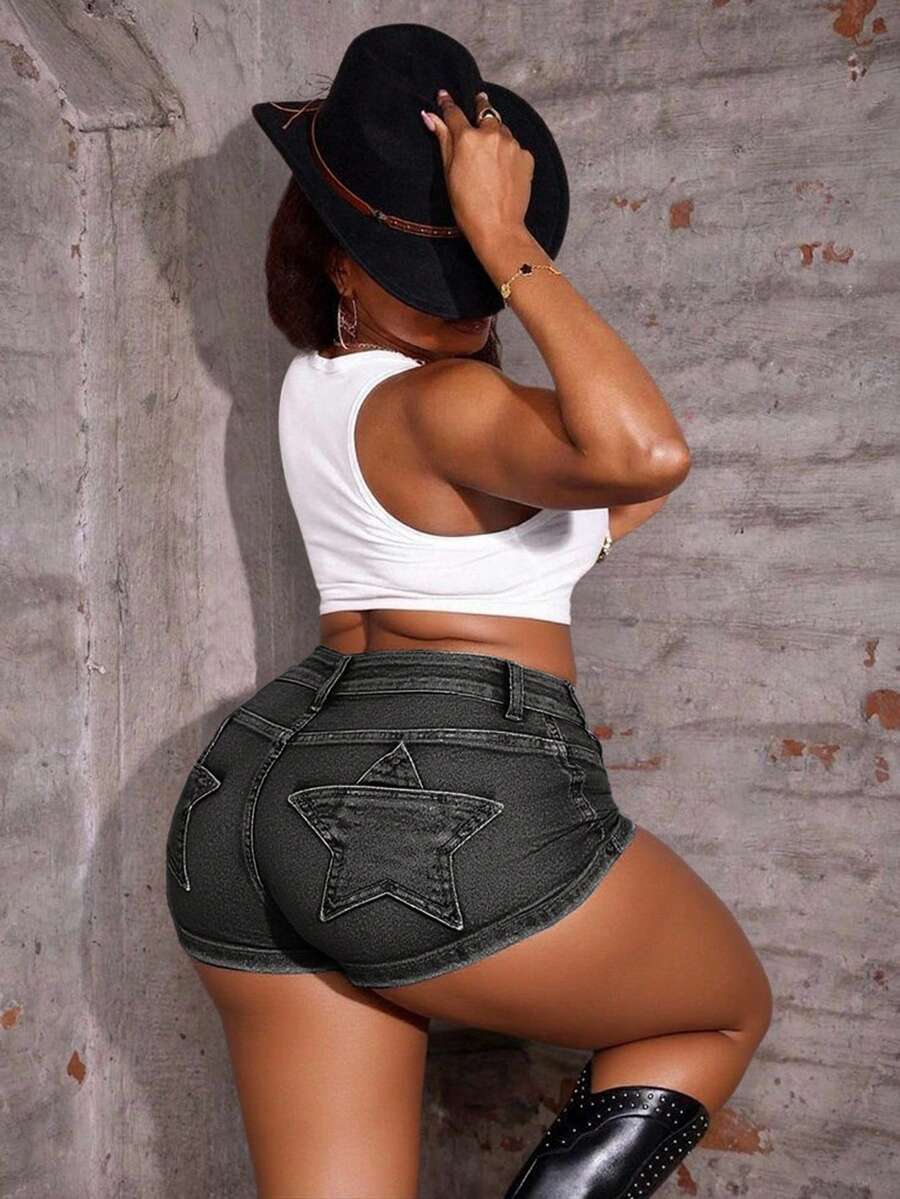 Grunge Punk Shorts di jeans taglie forti skinny sexy stile punk con tasche a stella