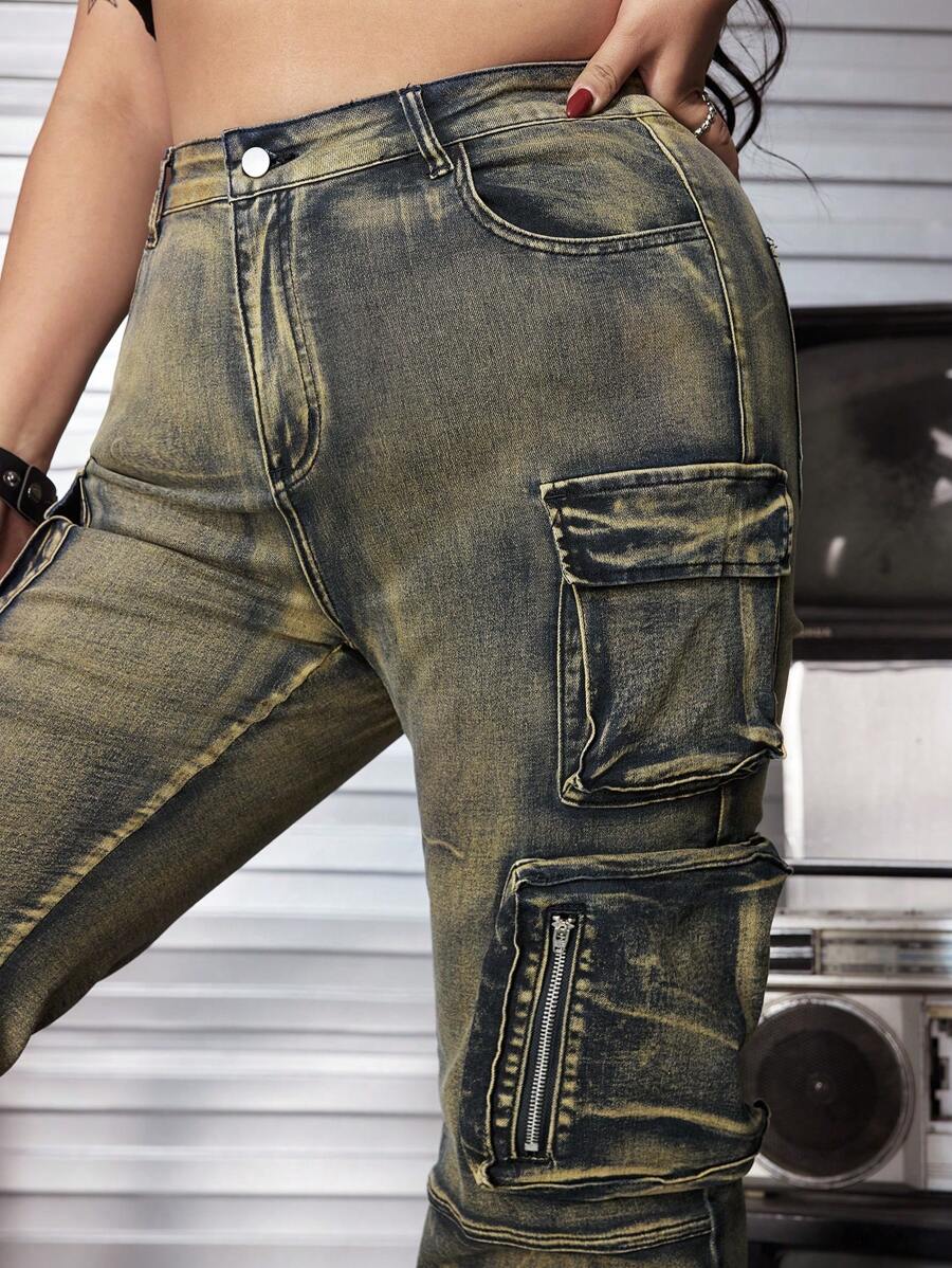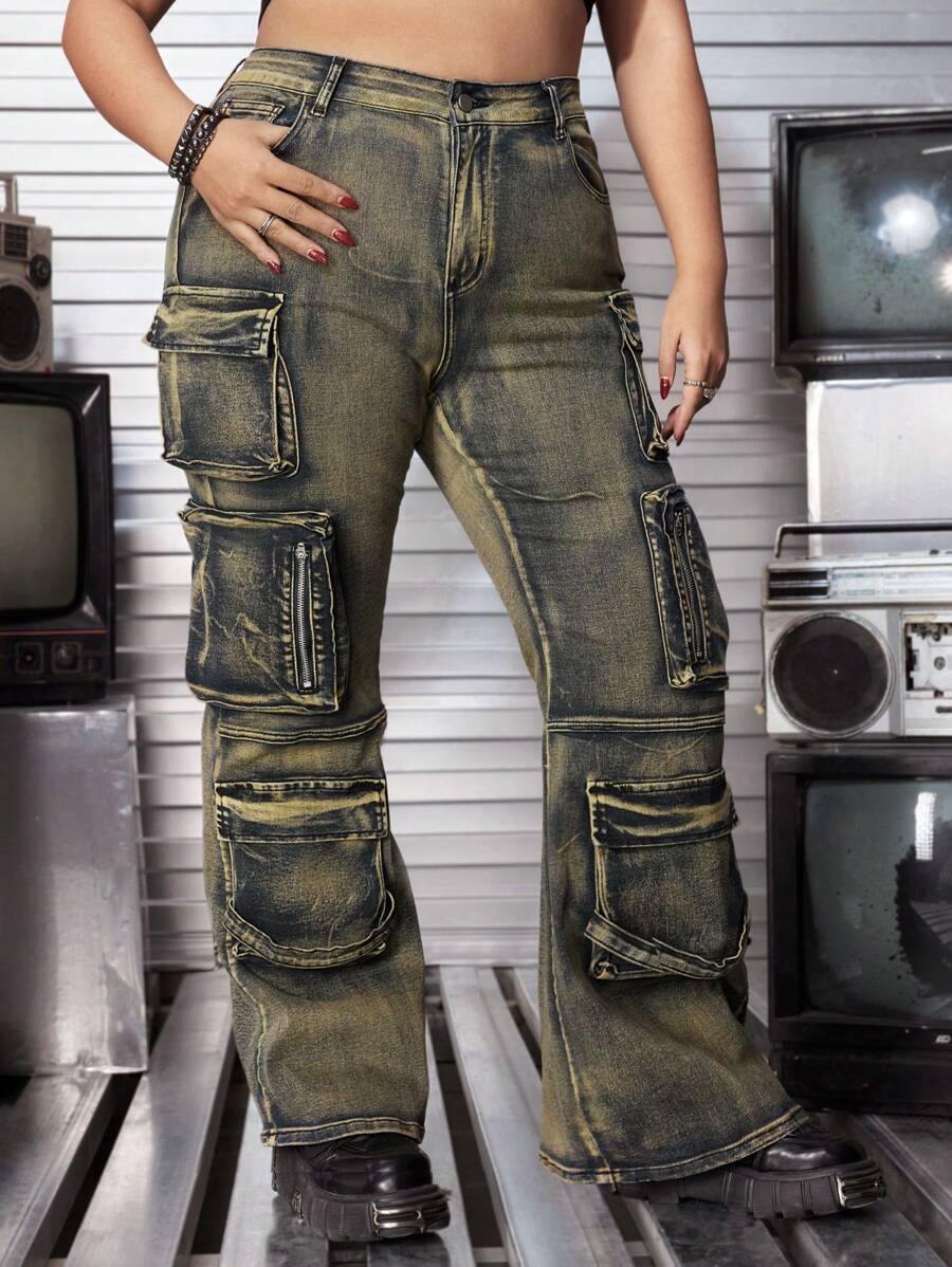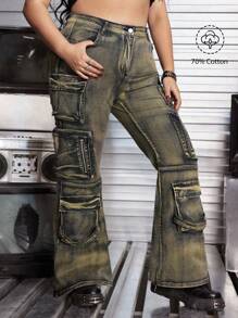 Grunge Punk Jeans a zampa extra larghi con strappi per donne in stile punk rock da strada, pantaloni cargo