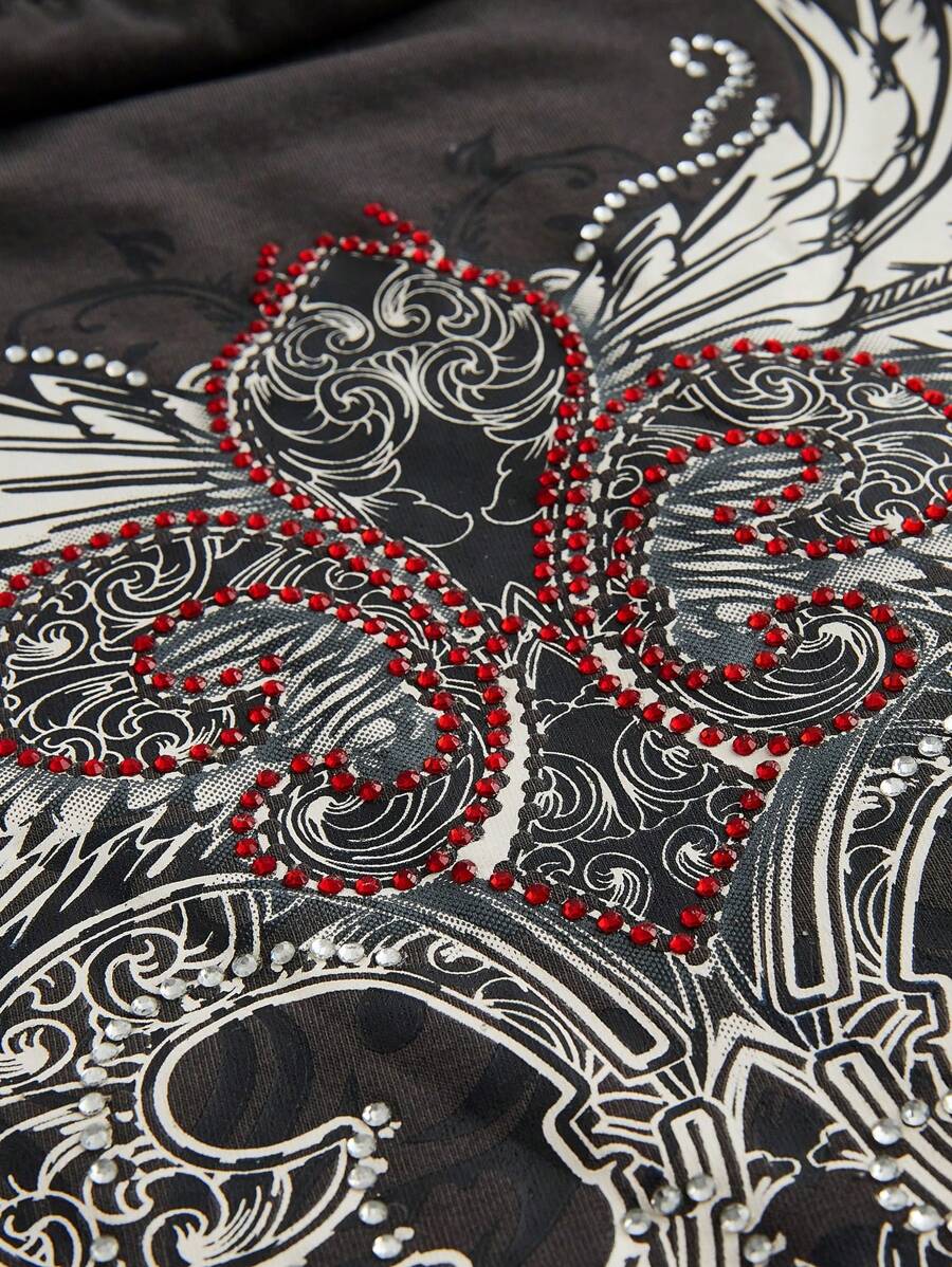 Grunge Punk Maglietta casual con spalle scoperte, maniche corte, stampa ali Y2K, laccetti laterali, taglie forti, per la scuola