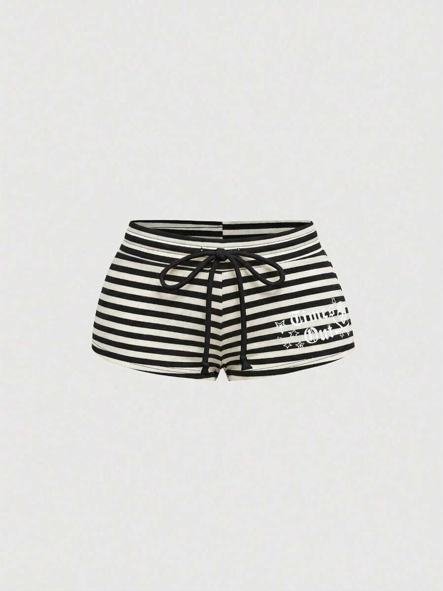 Grunge Punk Pantaloncini corti a vita bassa in stile Y2K, con stampa a strisce nere e grigie, pentagramma e strass, per donne taglie forti