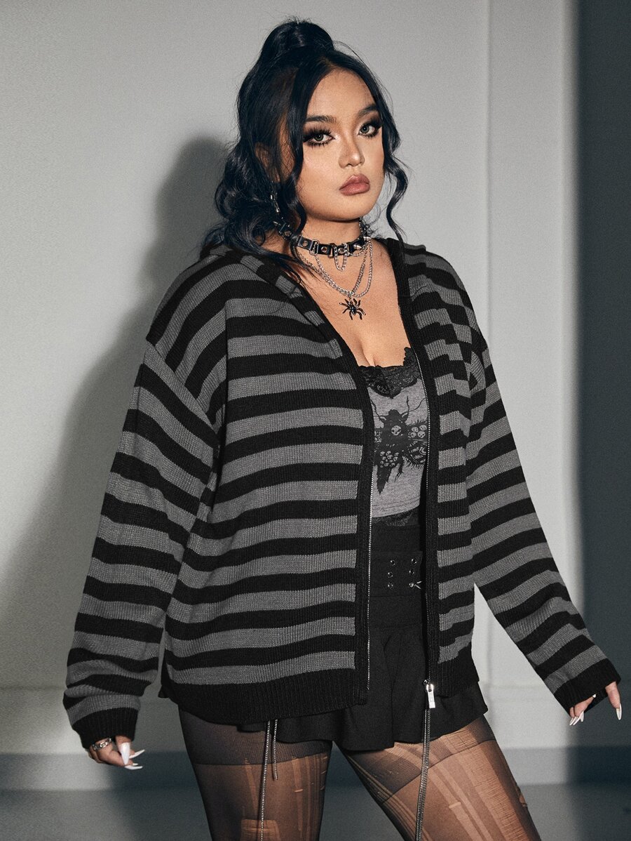 Grunge Punk Cardigan con spalle a goccia a righe in stile Plus, per la scuola