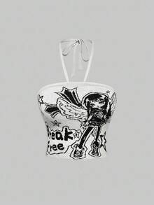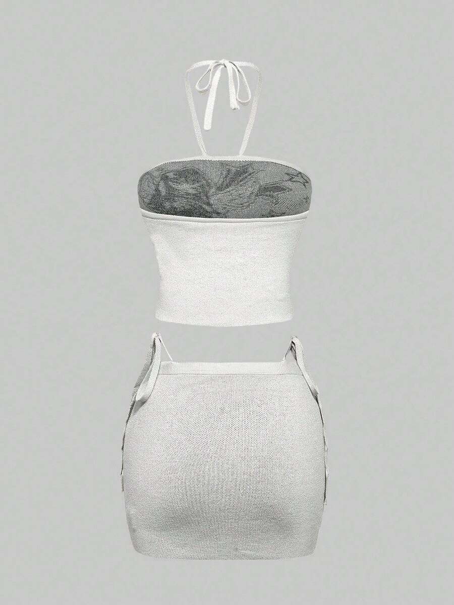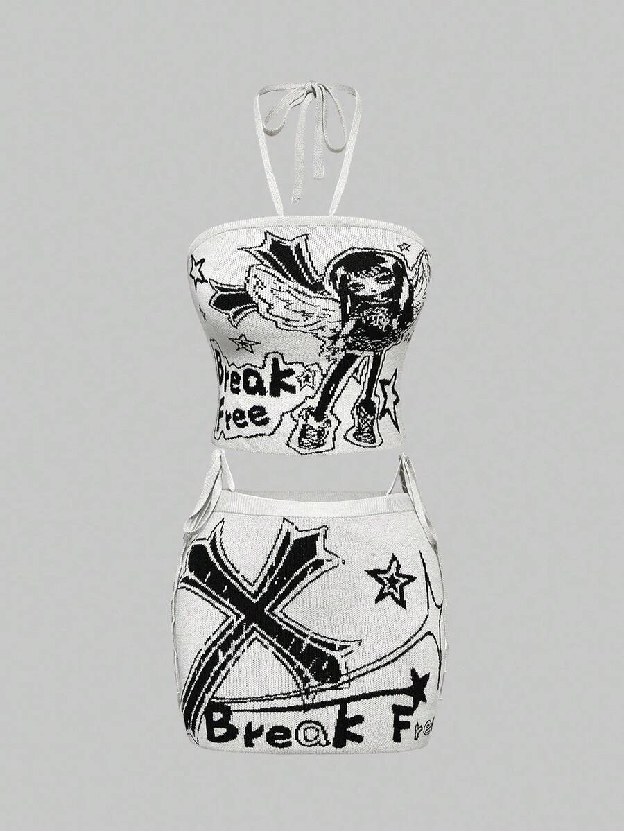 Grunge Punk Set da 2 pezzi in maglia jacquard stile punk e anime per donna: top a fascia + minigonna