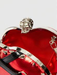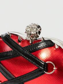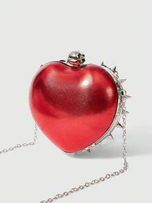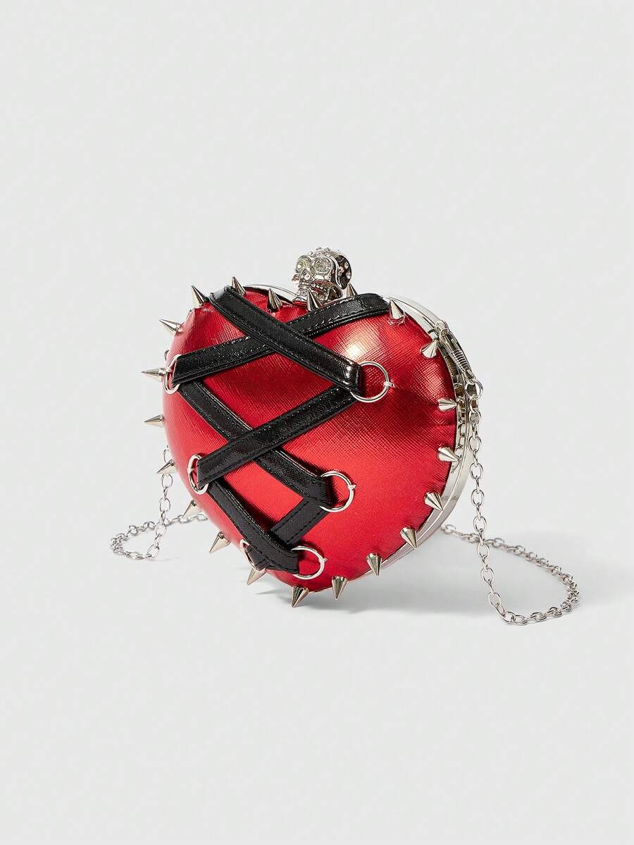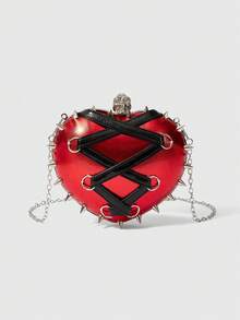 Grunge Punk Borsa a tracolla punk a forma di cuore con teschio, lacci e borchie, borsa a catena gotica di Y2K per feste e streetwear