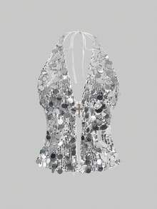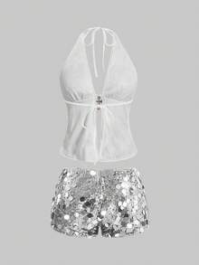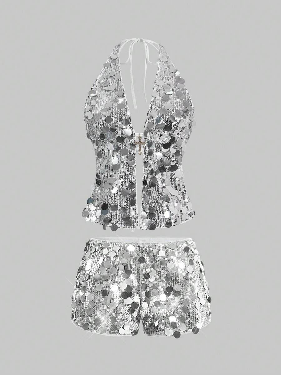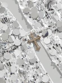 Grunge Punk Outfit da diva punk rock per feste, costume per eventi musicali festival e Capodanno, set da 2 pezzi con top a collo alto e pendente a croce sexy con paillettes, stile Y2K millennium