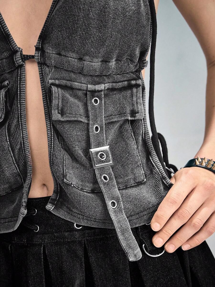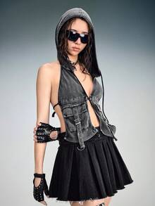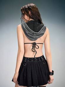 Grunge Punk Felpa con cappuccio da donna in stile punk con occhielli metallici 3D sulle tasche