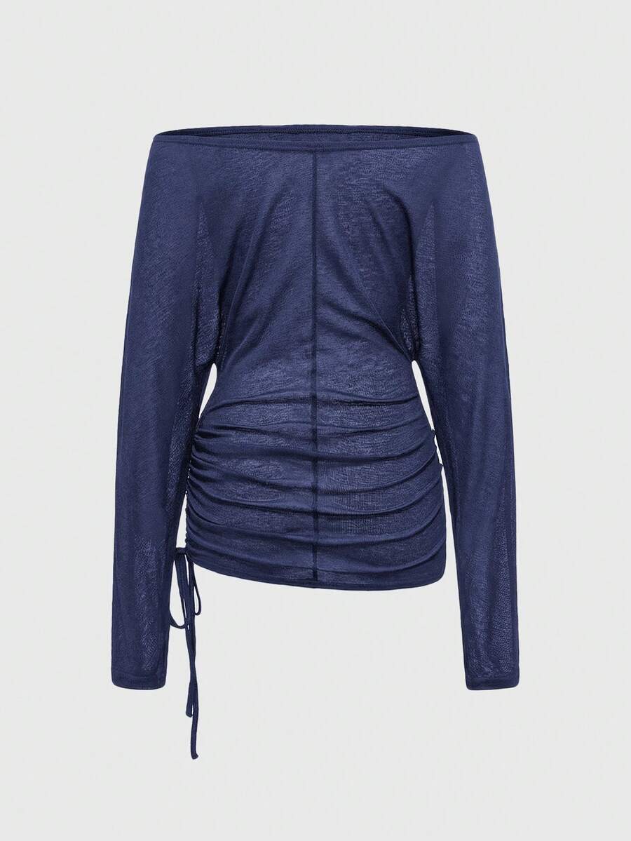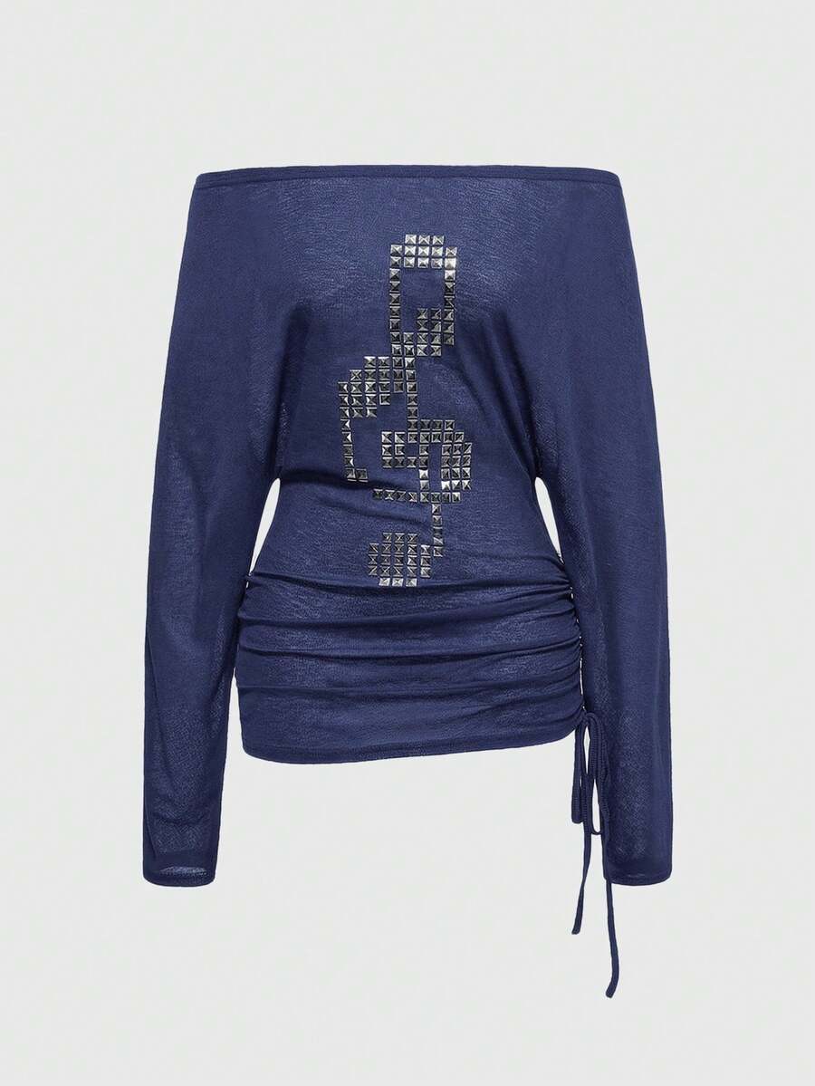 Grunge Punk Maglietta a maniche lunghe da donna con spalle scoperte, stile punk con borchie a forma di croce