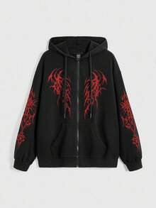 Grunge Punk Felpa con cappuccio in tessuto di cotone giapponese a maglia, con grafica punk, tasche con zip, adatta per festival musicali, per donne