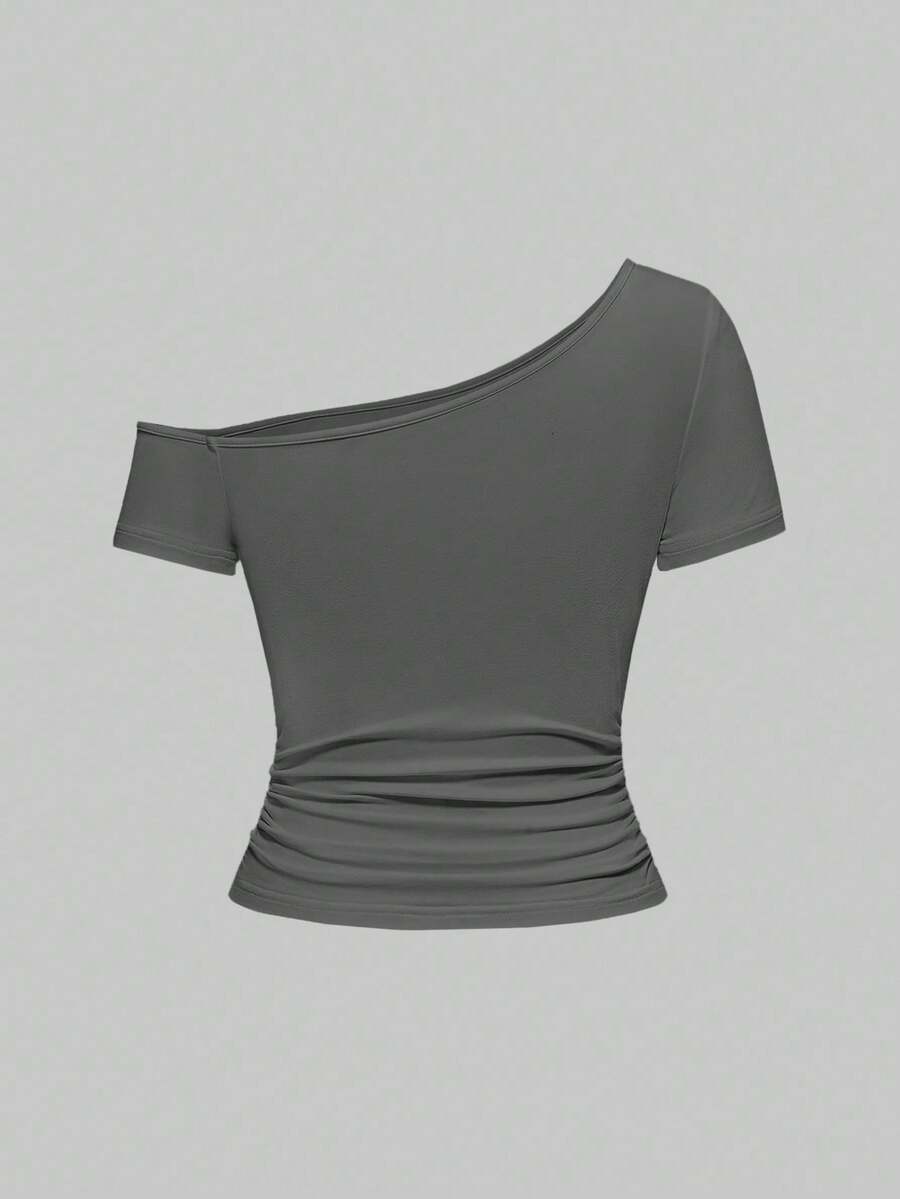 Grunge Punk Maglietta da donna asimmetrica con motivo vintage strappato, a pois e con stampa grigia di ali e ghirigori punk