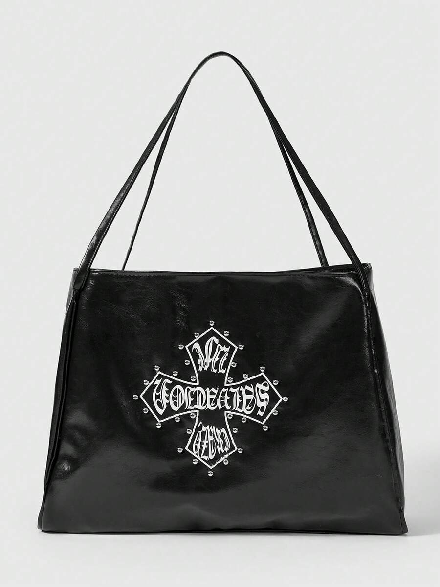 Grunge Punk Borsa a tracolla monocinghia di grande capacità con borchie a forma di croce