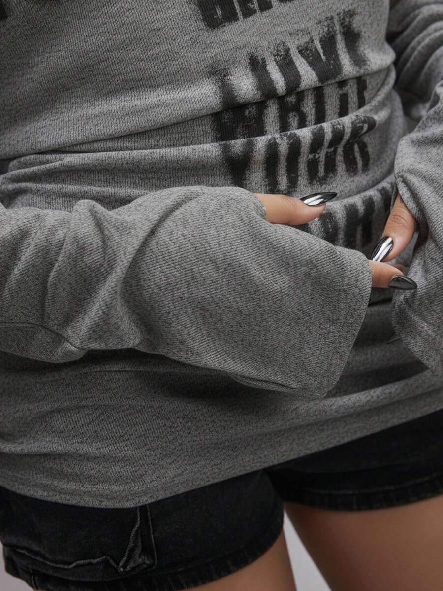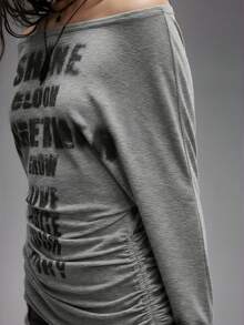 Grunge Punk Maglietta a maniche lunghe con stampa romantica punk di croci e lettere, scollo a spalle scoperte, per donne