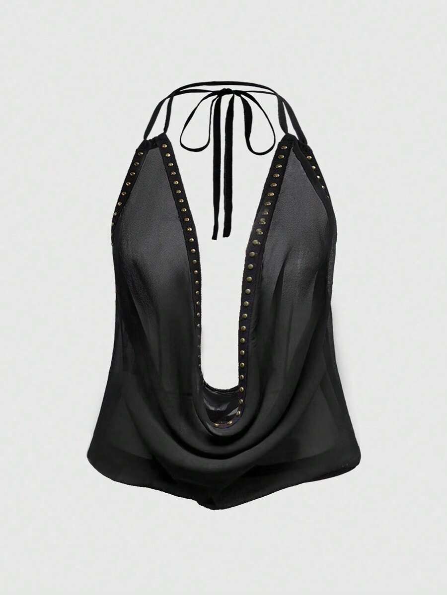 Grunge Punk Canottiera sexy con scollo profondo e schiena scoperta, con spalline a spaghetto, taglie forti