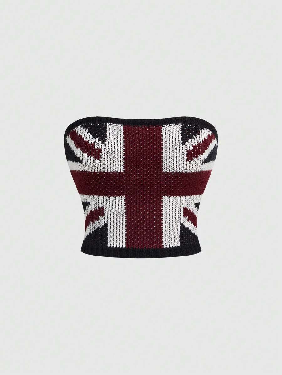 Grunge Punk Top a fascia lavorato a maglia con motivo retrò della bandiera britannica