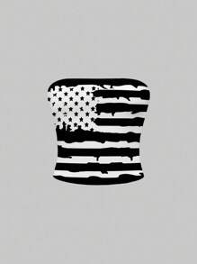 Grunge Punk Top canottiera corto vintage e sexy a blocchi di colore con motivo bandiera USA per donna