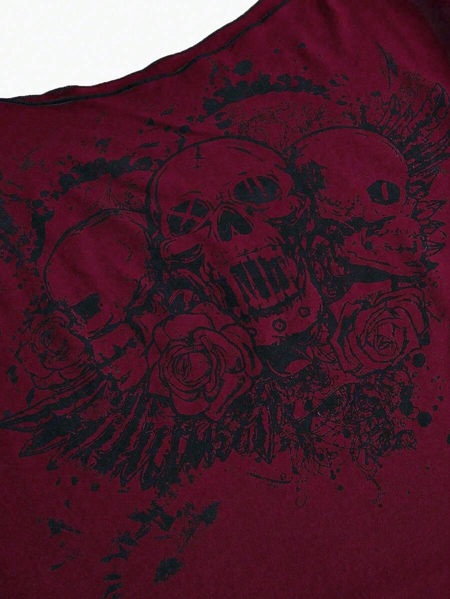 Grunge Punk Maglietta con stampa teschio e floreale con spalle scoperte