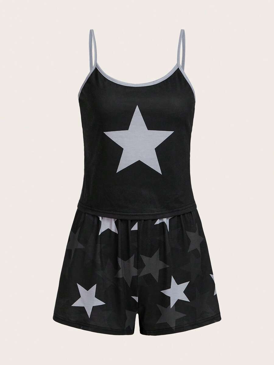 Grunge Punk Set pigiama con stampa stella bordo a contrasto