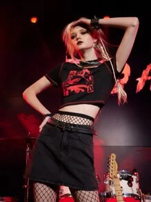 Grunge Punk Maglietta corta cucitura lettere occhio grafico