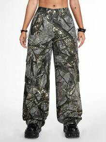 Grunge Punk Jeans larghi a gamba dritta stile urban casual con stampa floreale in tessuto per donne