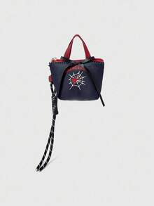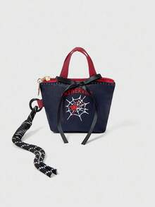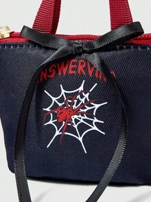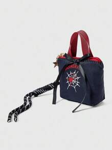 Grunge Punk Borsa per il trucco portatile di stile con motivo ragnatela e ragno scuro, adatta per Ognissanti