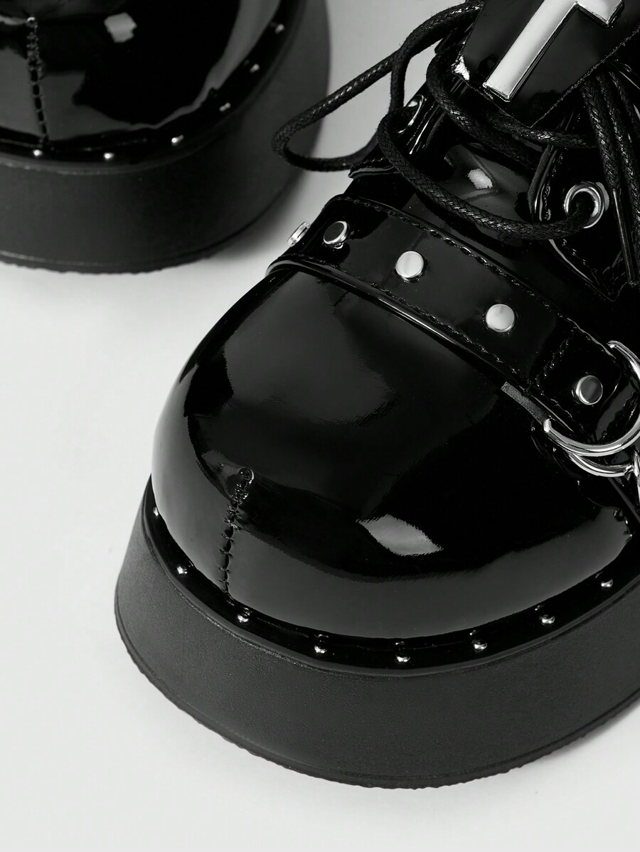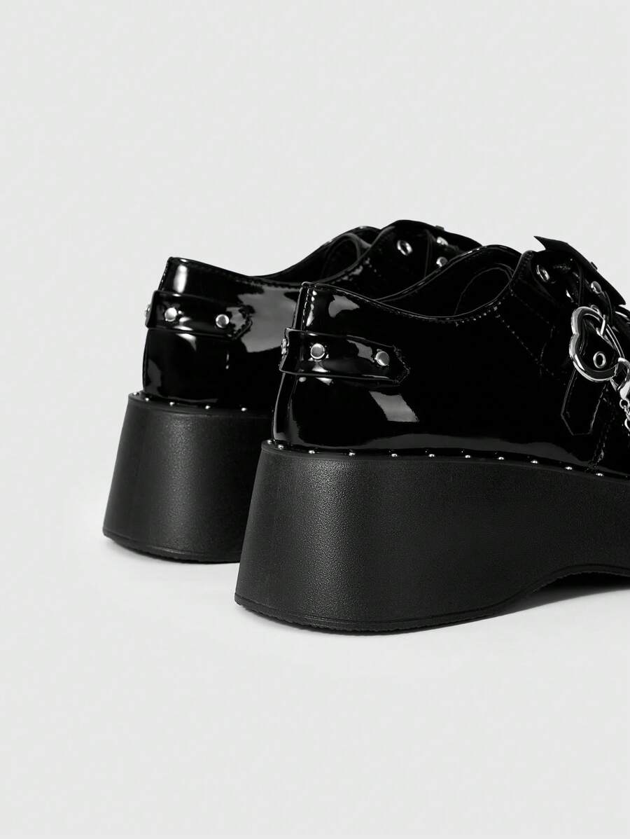 Grunge Punk Scarpe con suola platform stile punk dolce, cultura sottacquea Y2K, suola spessa, punta tonda, tacco alto, stile britannico "Hot Girl" giapponese JK in finta pelle