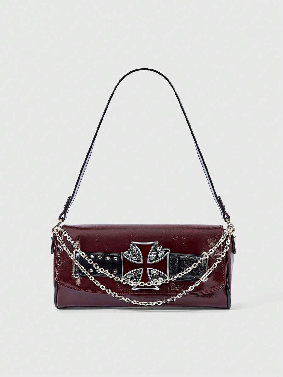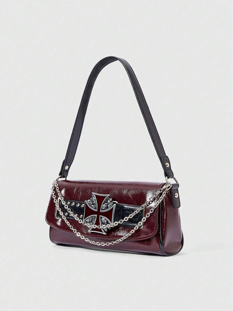 Grunge Punk Borsa a tracolla unica con teschio, borsa a tracolla punk rock chic con borchie per donne