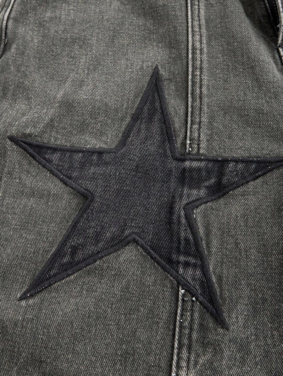 Grunge Punk Pantaloncini di jeans bermuda unisex stile punk da strada con design a stelle 3D, tasche, effetto invecchiato lavato, gamba ampia, adatti per la scuola